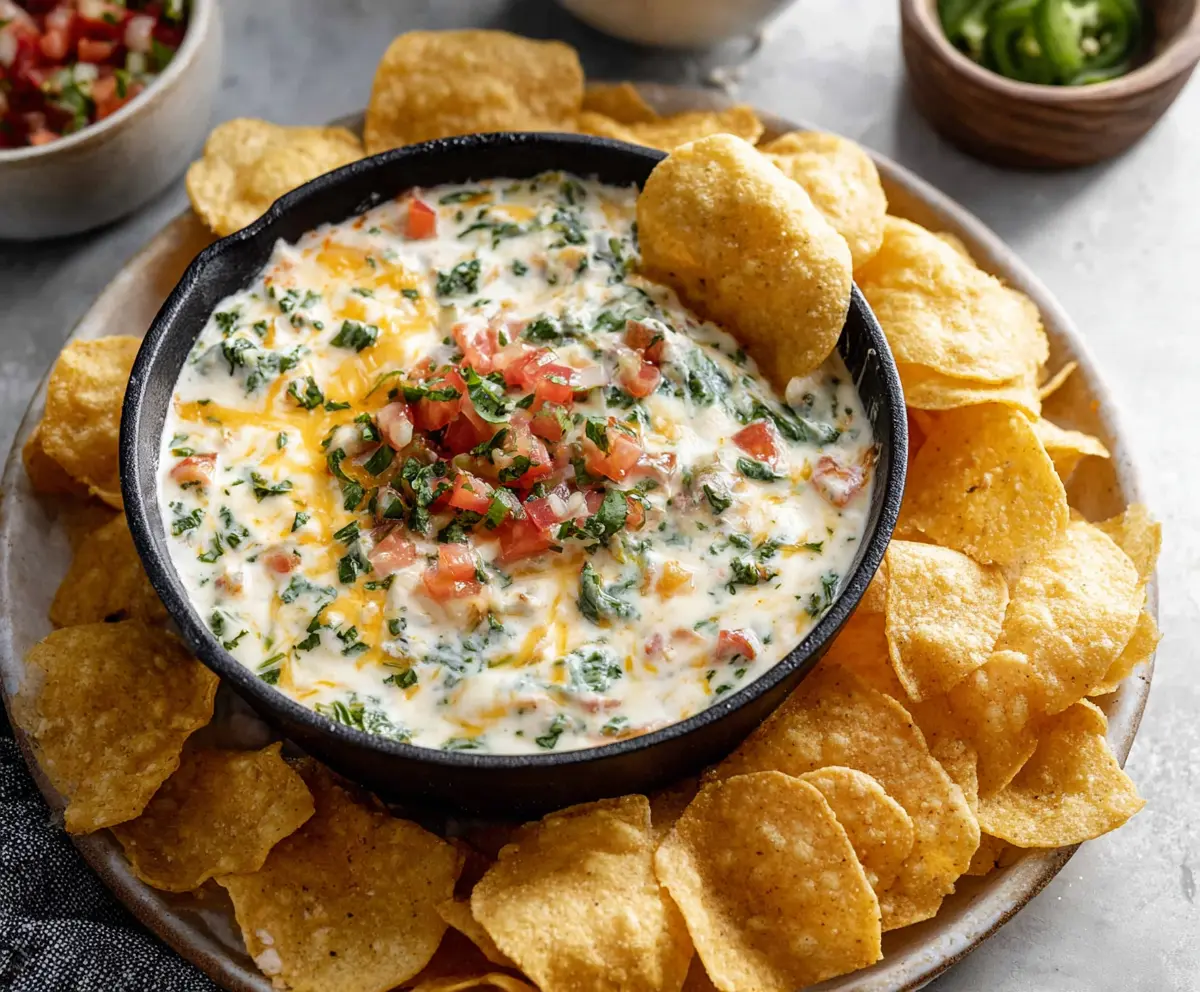 Every time I make this dip, it disappears in minutes—it’s just that good! I love serving it with fresh tortilla chips for that crunchy delight. Who can resist? 😄
