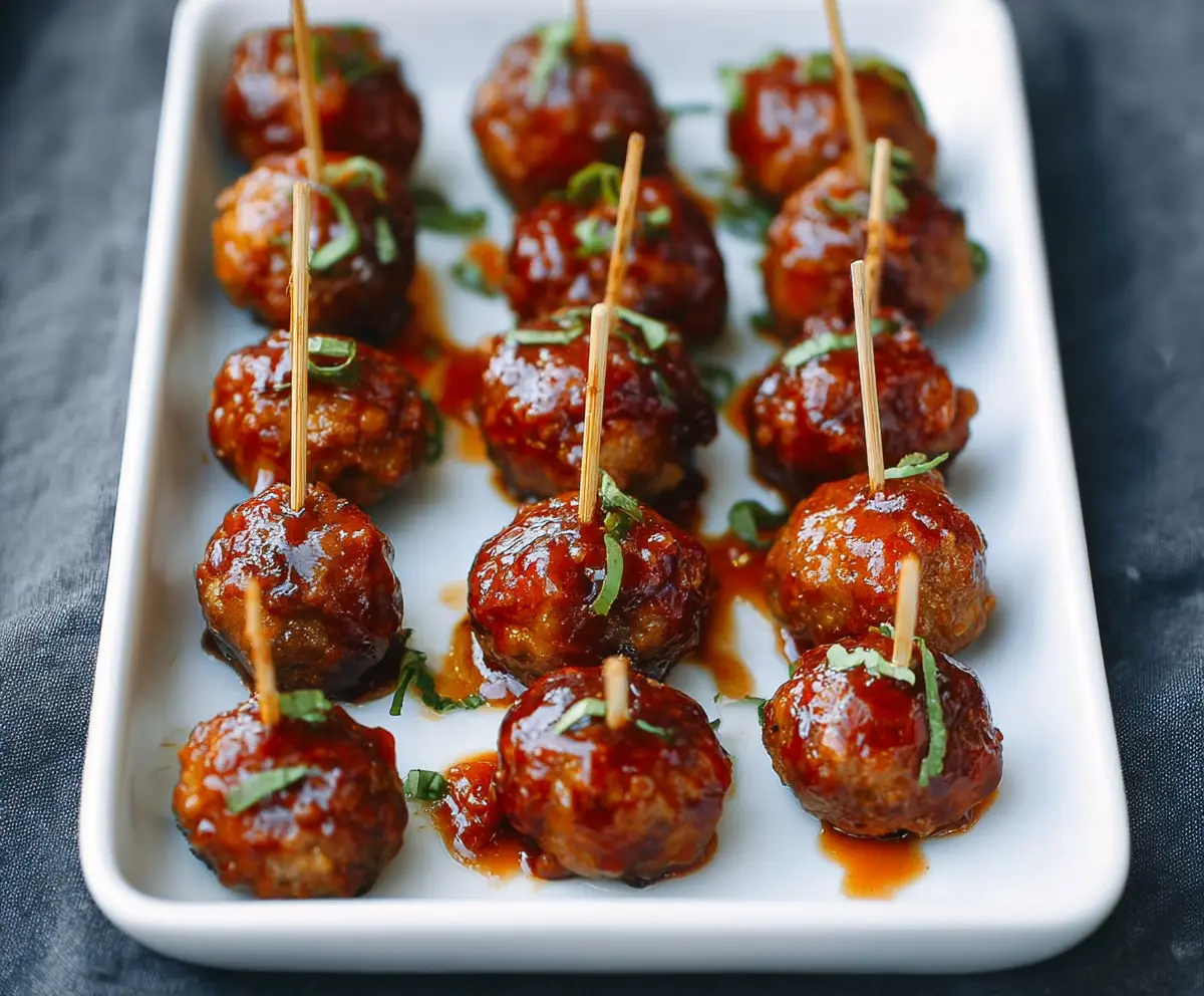 Transfer your saucy meatballs to a serving platter. For easy snacking, insert toothpicks into each meatball. To finish, sprinkle with chopped parsley or chives for a fresh touch. Serve warm and enjoy!
