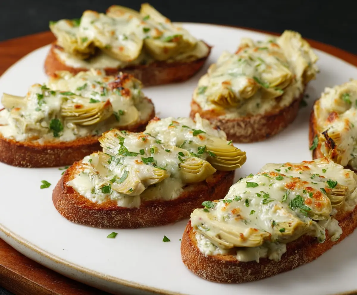 You can prepare the artichoke mixture ahead of time and store it in the fridge. Just toast the bread right before serving to keep it crispy. This way, you can assemble them quickly when you’re ready to enjoy!