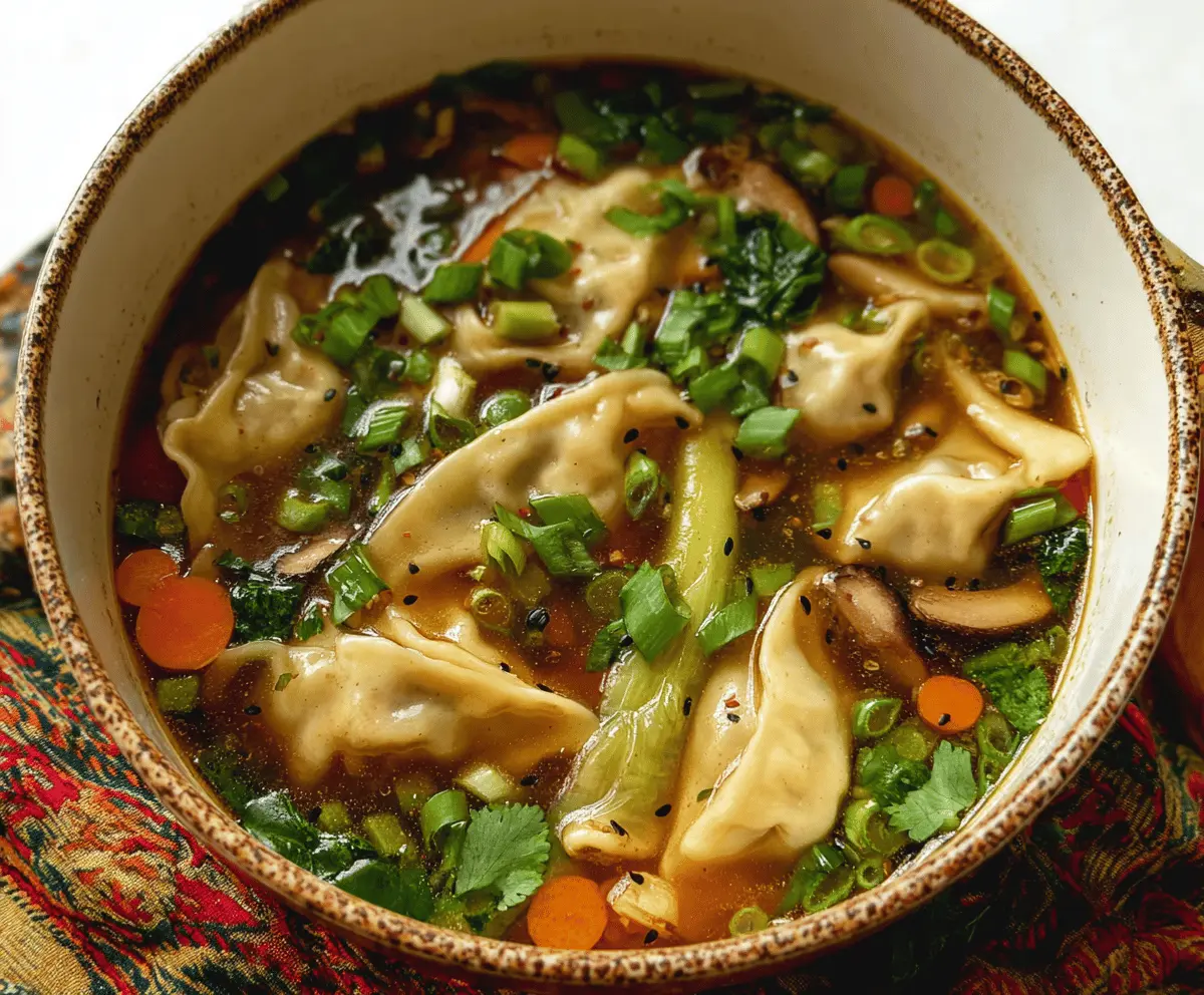 This Asian Dumpling Potsticker Soup is warm and comforting! It features tasty dumplings floating in a flavorful broth, making it perfect for a cozy night in.