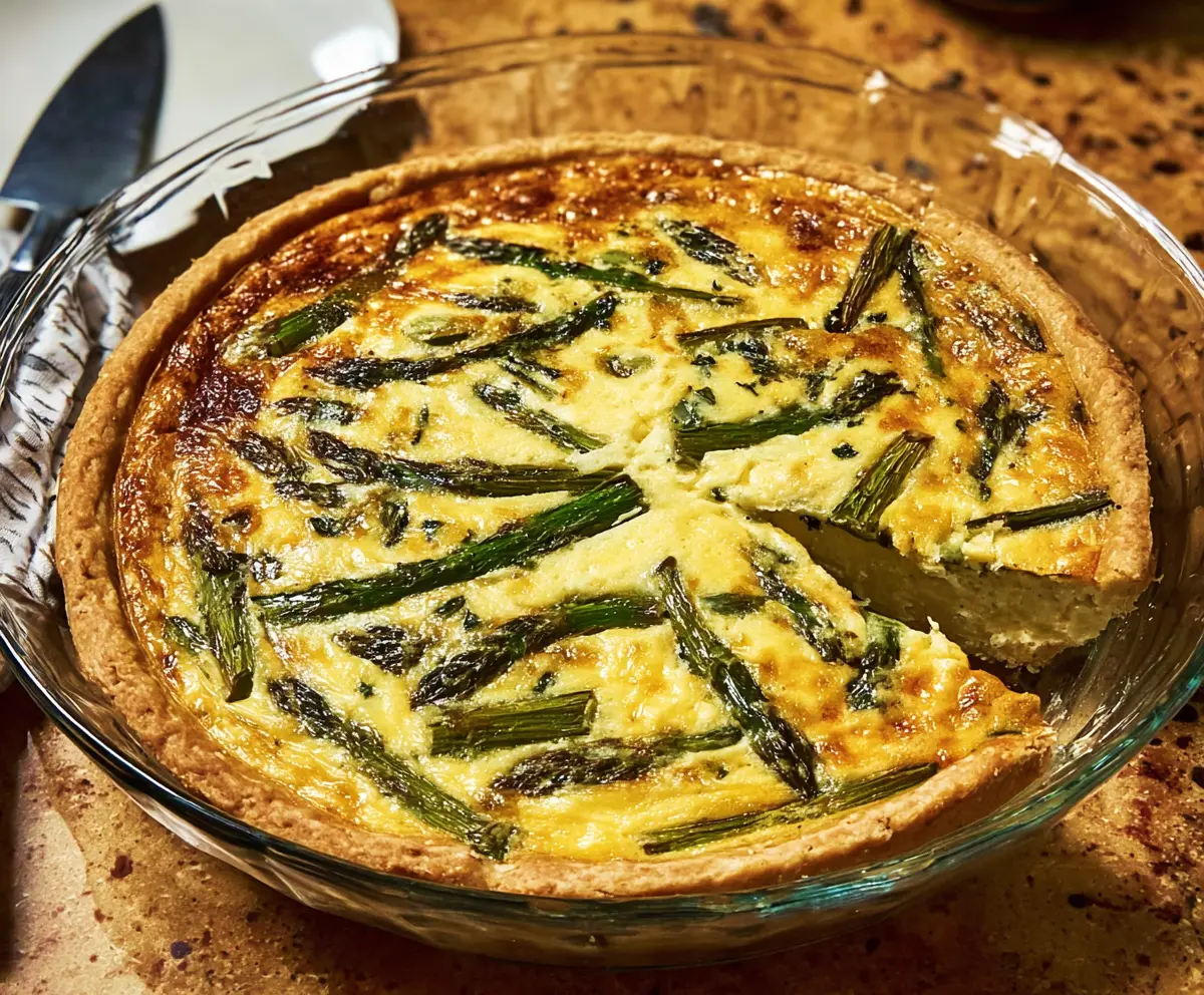 This Asparagus and Gruyere Quiche is a delicious mix of creamy eggs, fresh asparagus, and rich Gruyere cheese, all nestled in a flaky crust. Perfect for breakfast or brunch!