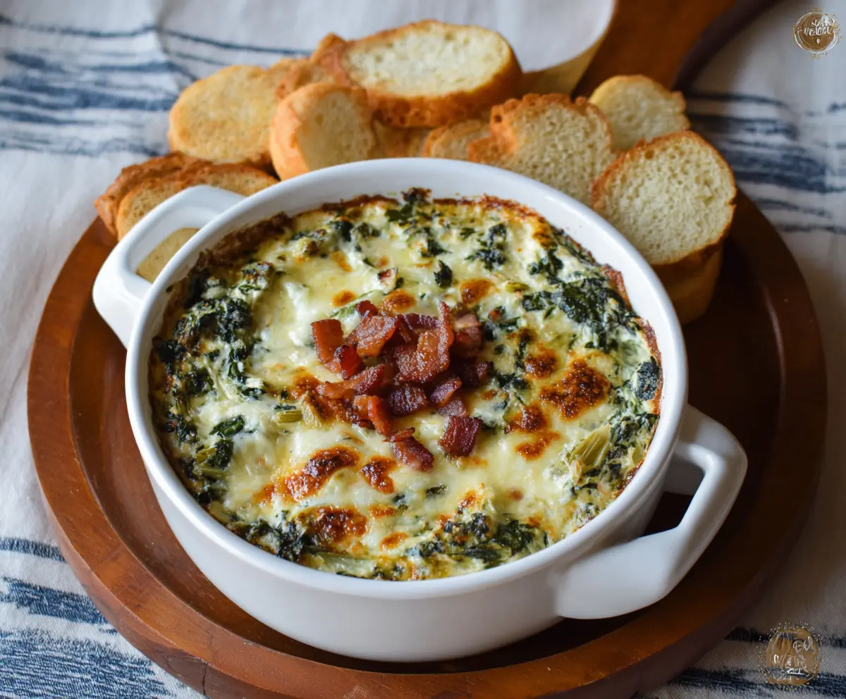 This creamy Bacon Spinach Artichoke Dip is the ultimate party snack! With crispy bacon, fresh spinach, and tasty artichokes mixed in, it’s a flavor bomb that everyone loves.
