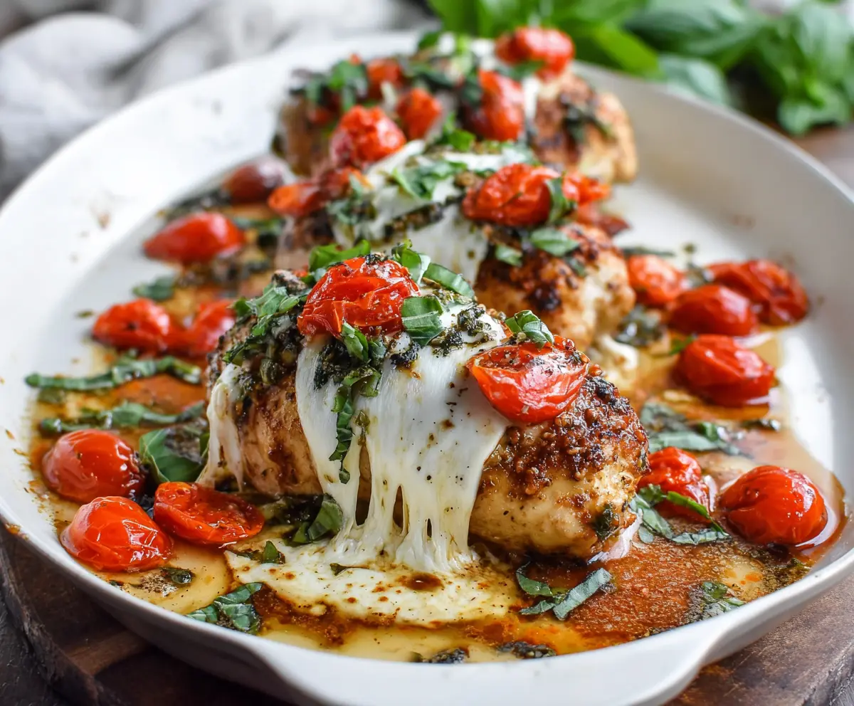 This Baked Caprese Chicken is a wonderful mix of juicy chicken, fresh tomatoes, and creamy mozzarella, all baked to perfection. It’s like a little Italian party on your plate!