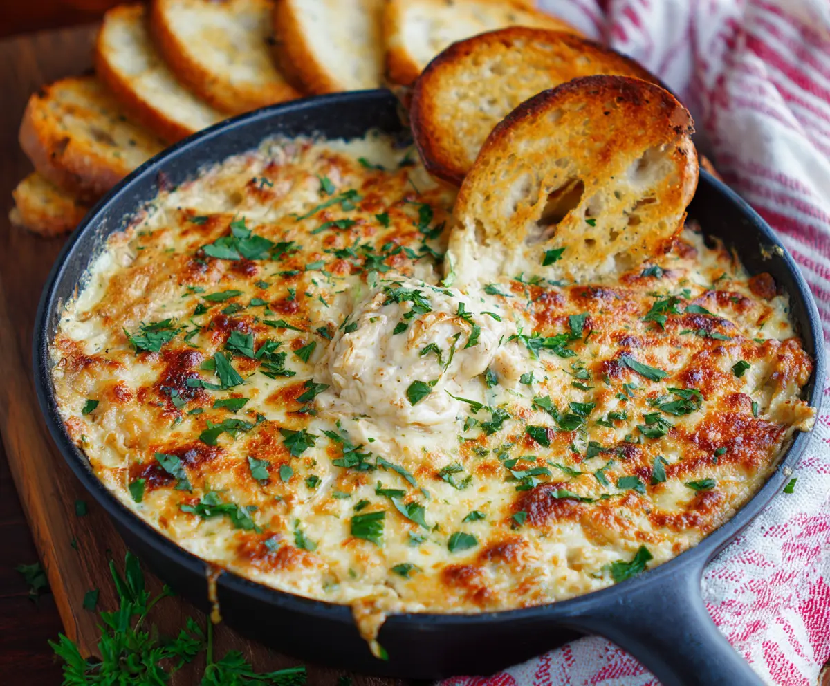 Grab your favorite bread slices or crackers and dig into your warm Baked Chicken Alfredo Dip! It’s perfect for sharing at parties or enjoying a cozy night in. Enjoy!