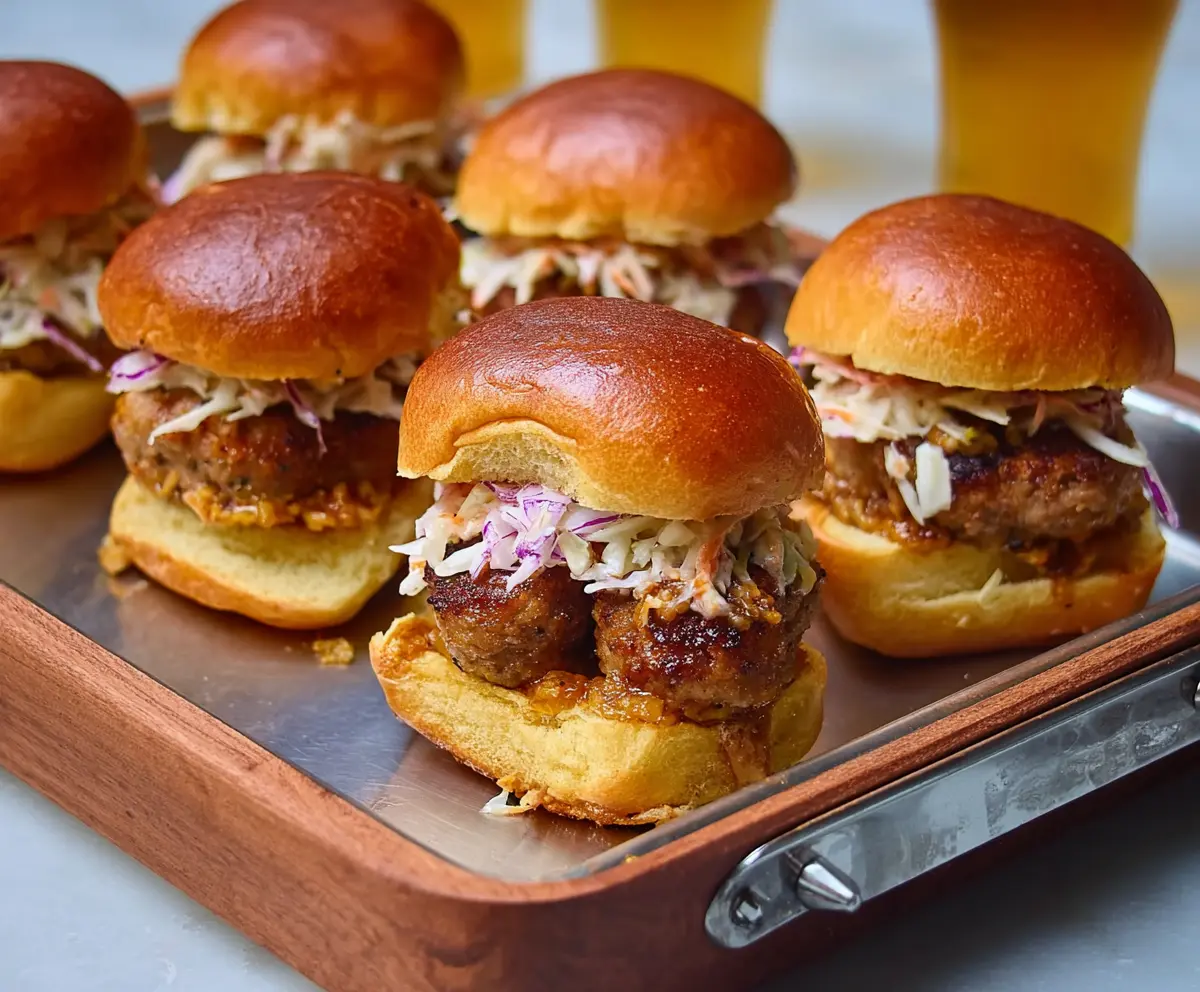 Beer brat sliders are a fun twist on traditional sliders! Juicy bratwurst cooked in beer are nestled in soft slider buns, making them super tasty and easy to share.