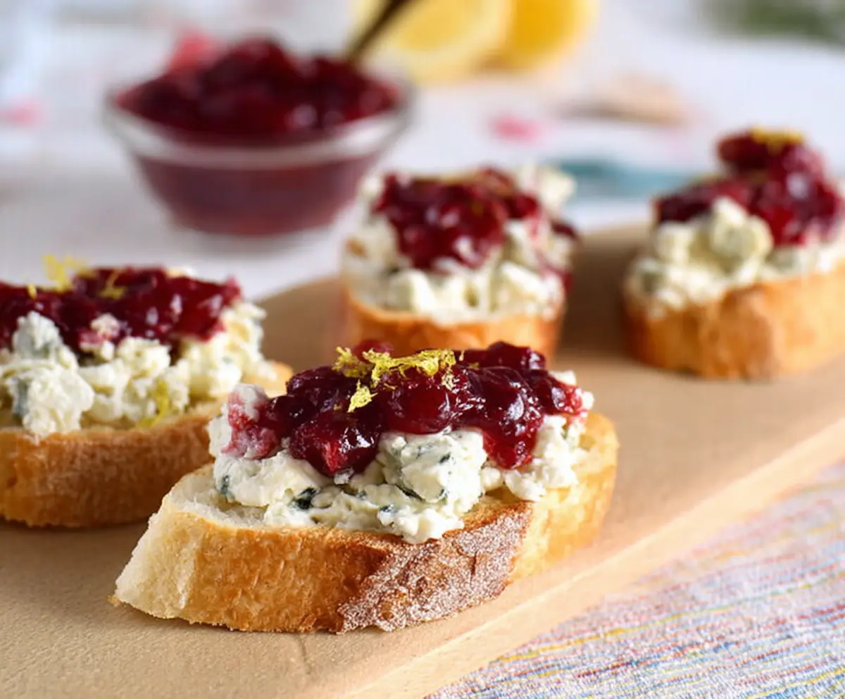 While crostini are best enjoyed fresh, you can store any leftover assembled crostini in an airtight container in the fridge for up to 2 days. The texture might soften, so consider keeping the cheese mixture, cranberry topping, and toasted bread separate until you’re ready to eat again.