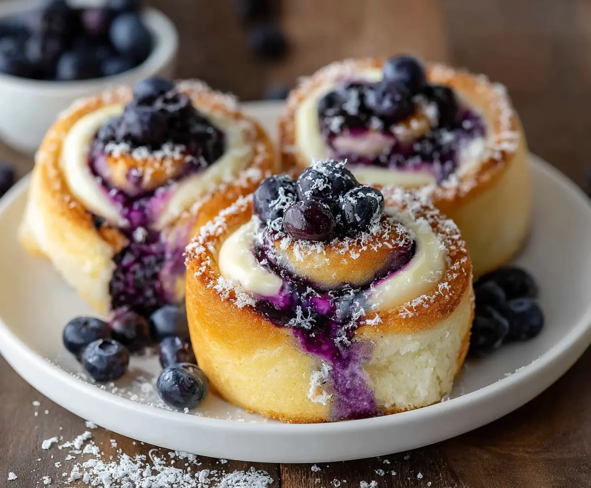 These Blueberry Cheesecake Rolls are a tasty twist on the classic dessert! Soft and sweet dough wraps around rich cheesecake filling and juicy blueberries, making each bite a dreamy delight!