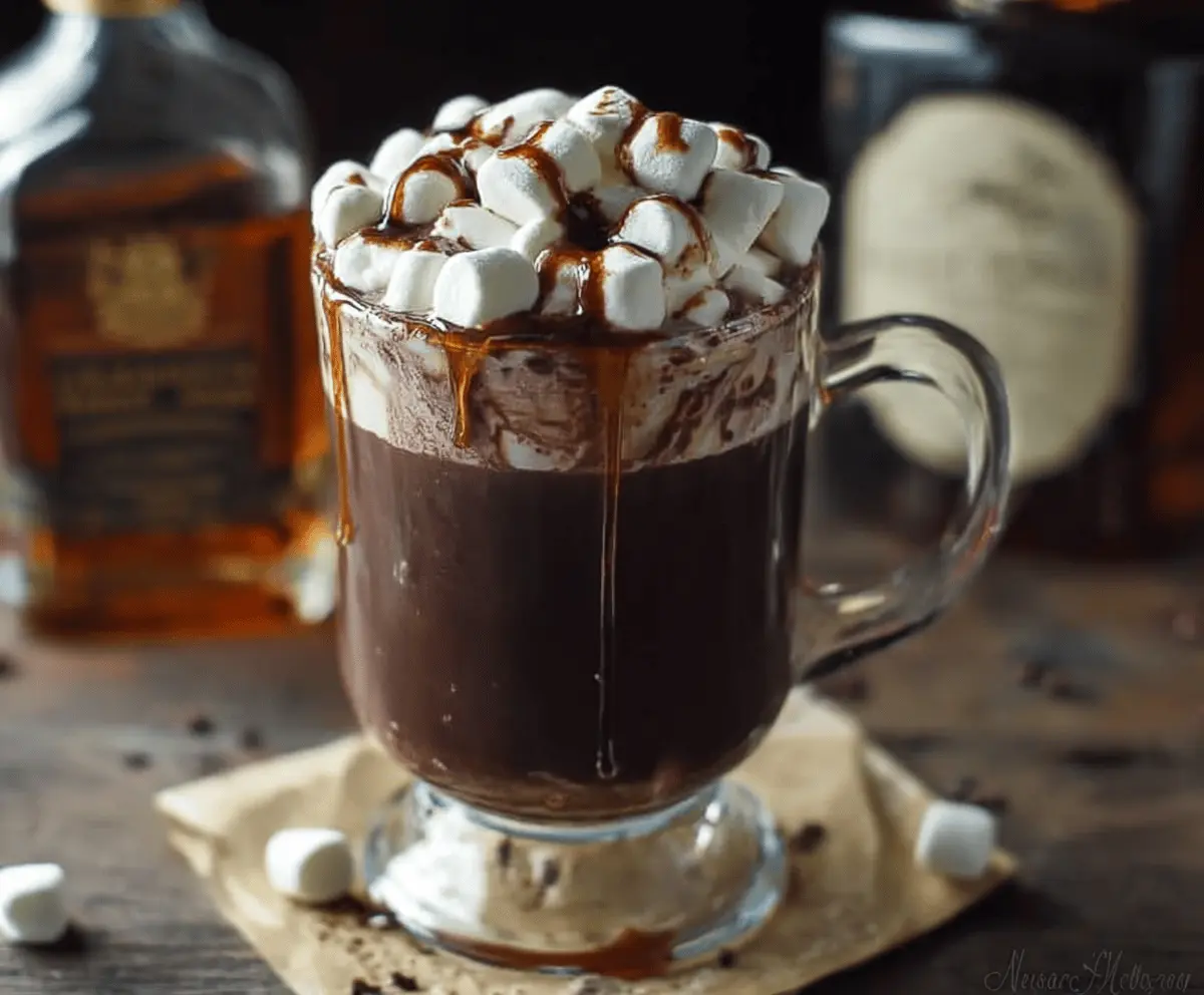 This lovely hot chocolate gets a grown-up twist with a splash of bourbon. It’s rich, creamy, and perfect for cozy nights by the fire!