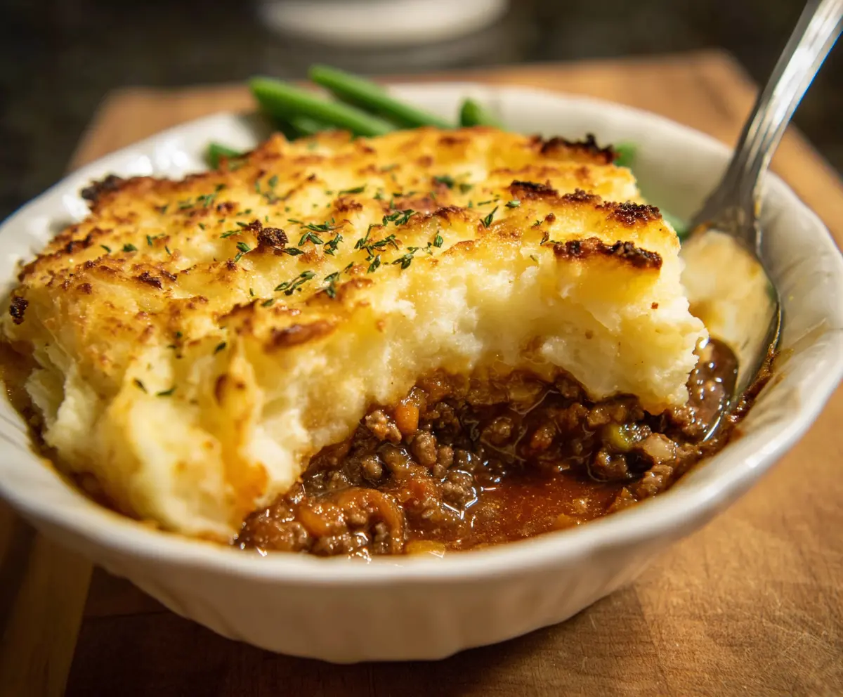 Shepherd’s pie pairs beautifully with steamed green vegetables like green beans, broccoli, or a simple salad. For a heartier meal, try crusty bread or a fresh baguette on the side!