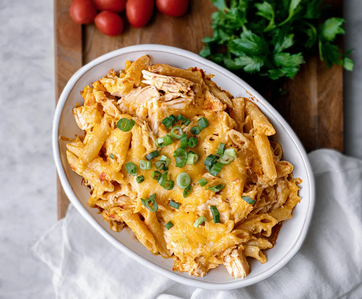 This Buffalo Chicken Pasta Bake is a comforting dish that’s full of flavor! It’s made with tender chicken, spicy buffalo sauce, creamy cheese, and pasta—all baked to perfection.