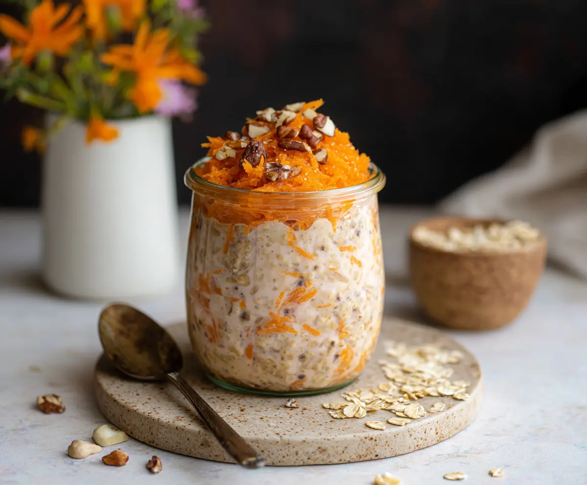 I love how easy it is to make these oats the night before. Just mix everything and let it chill! They taste great topped with nuts or a little splash of maple syrup. Who knew breakfast could be so good? 🥕✨