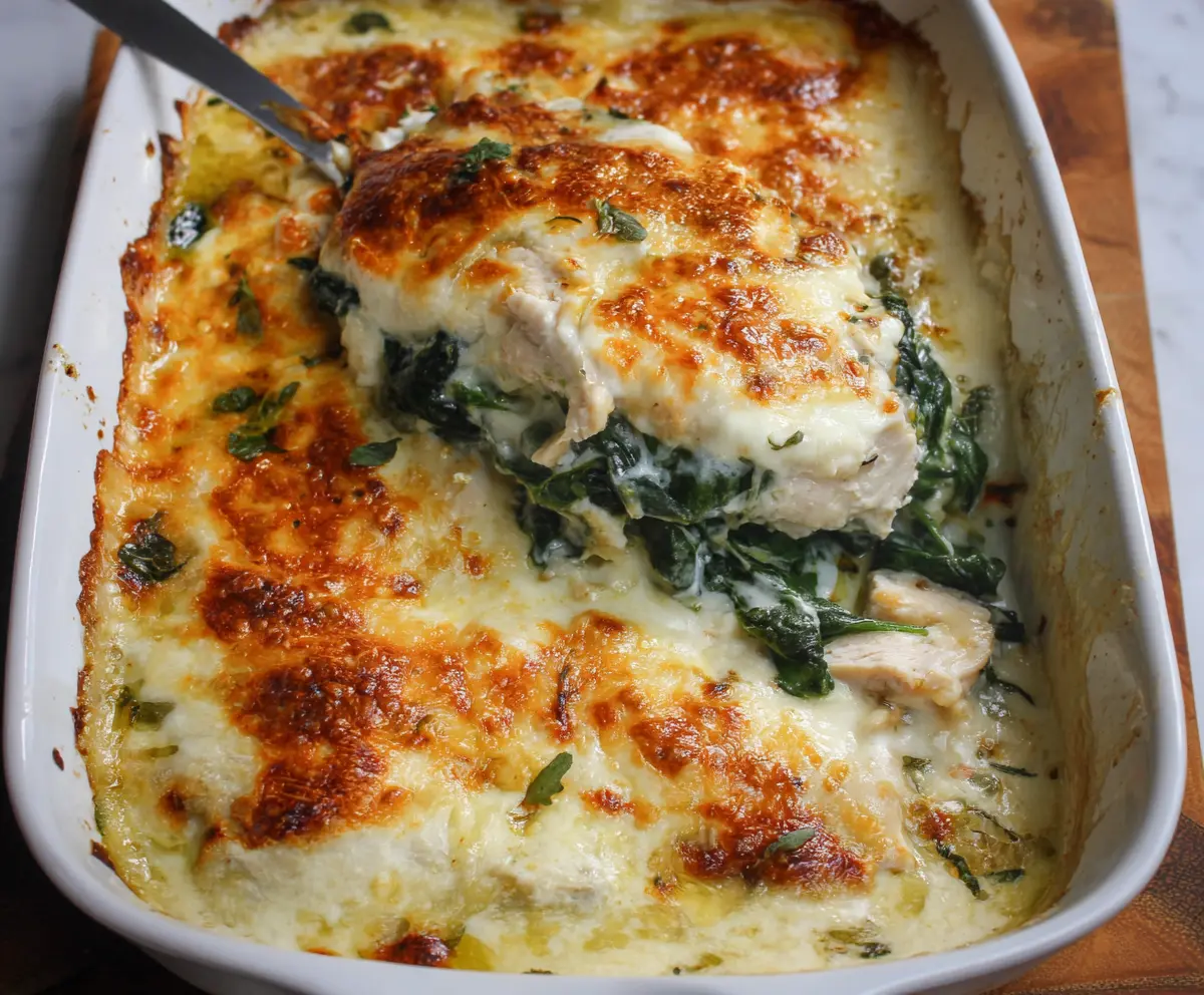 This Chicken and Spinach Casserole is a warm, tasty dish packed with tender chicken and fresh spinach, all mingling with creamy cheese. Comfort food at its best!