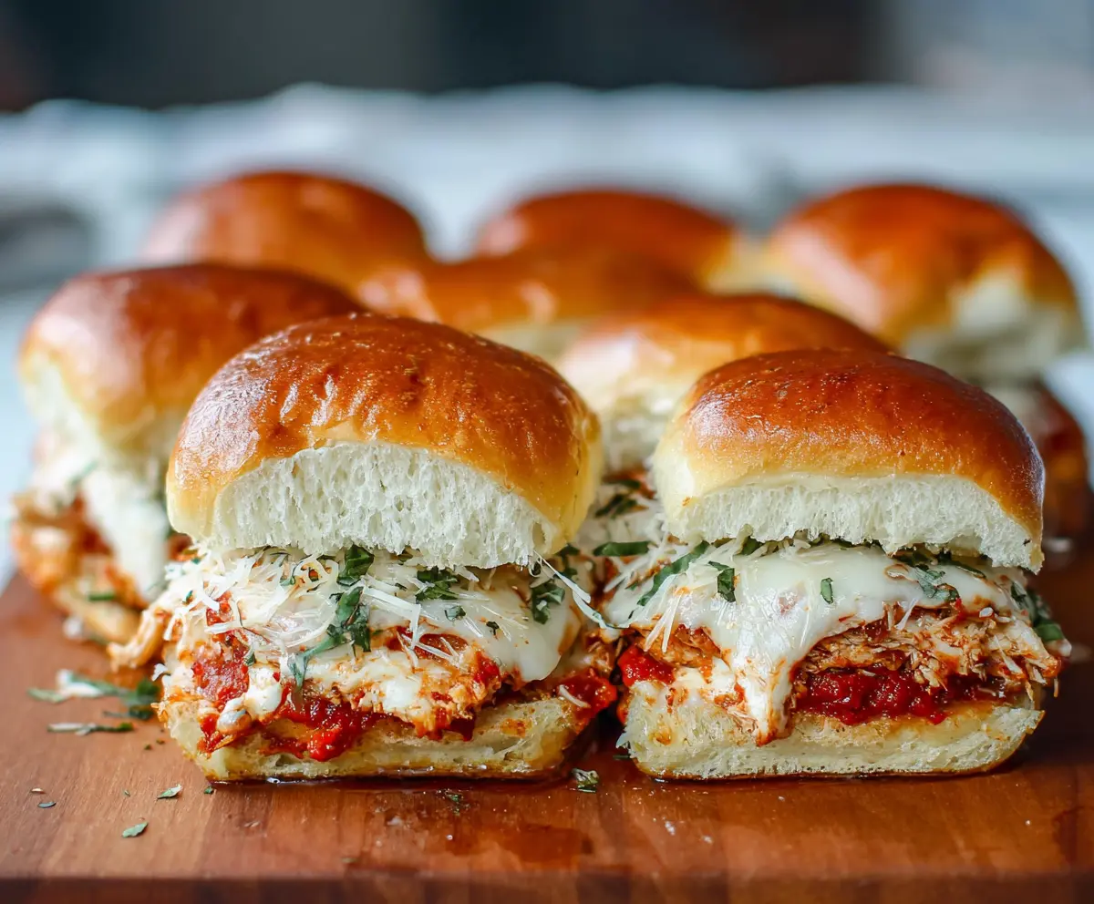 These Chicken Parm Sliders are mini sandwiches filled with juicy chicken and melted cheese, all topped with yummy marinara sauce. Perfect for parties or game days!