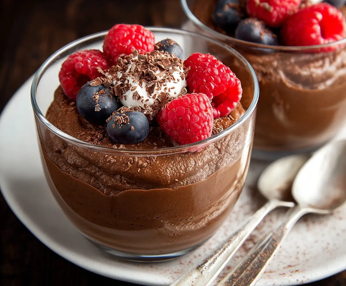 When you’re ready to serve, take the pudding out of the fridge. Add a dollop of whipped cream on top of each serving for that extra indulgence. Then, garnish with fresh raspberries and blueberries, and if you want a touch of elegance, sprinkle on some dark chocolate shavings!