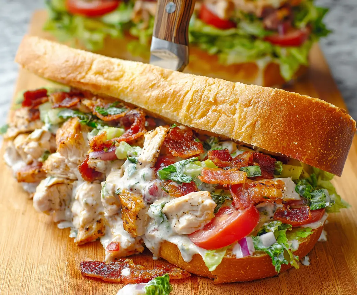 This Chopped Chicken Bacon Ranch Sandwich is the perfect mix of tender chicken, crispy bacon, and creamy ranch dressing all piled high on a soft bun. What’s not to love?