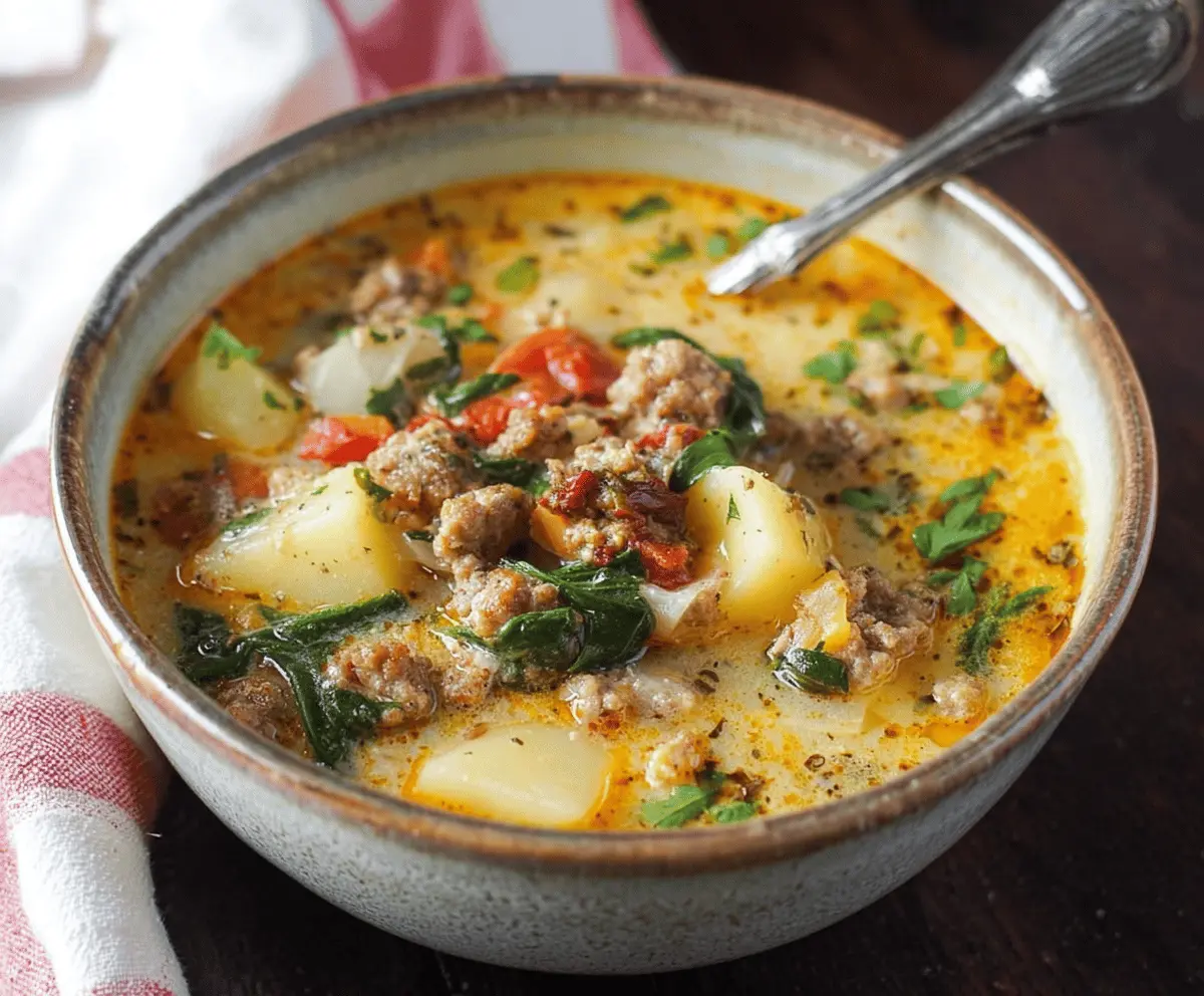 This cozy soup is filled with savory Italian sausage, tender potatoes, and fresh veggies. It’s perfect for chilly days and warms you right up, one spoonful at a time.