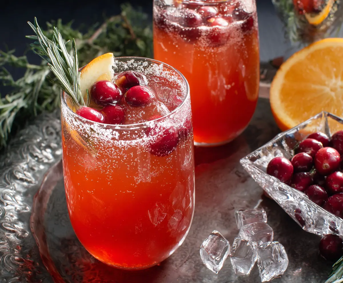 For a beautiful finishing touch, garnish each cocktail with a few fresh cranberries skewered on a sprig of rosemary. You can also add a lemon slice on the rim for an extra pop of color and freshness.