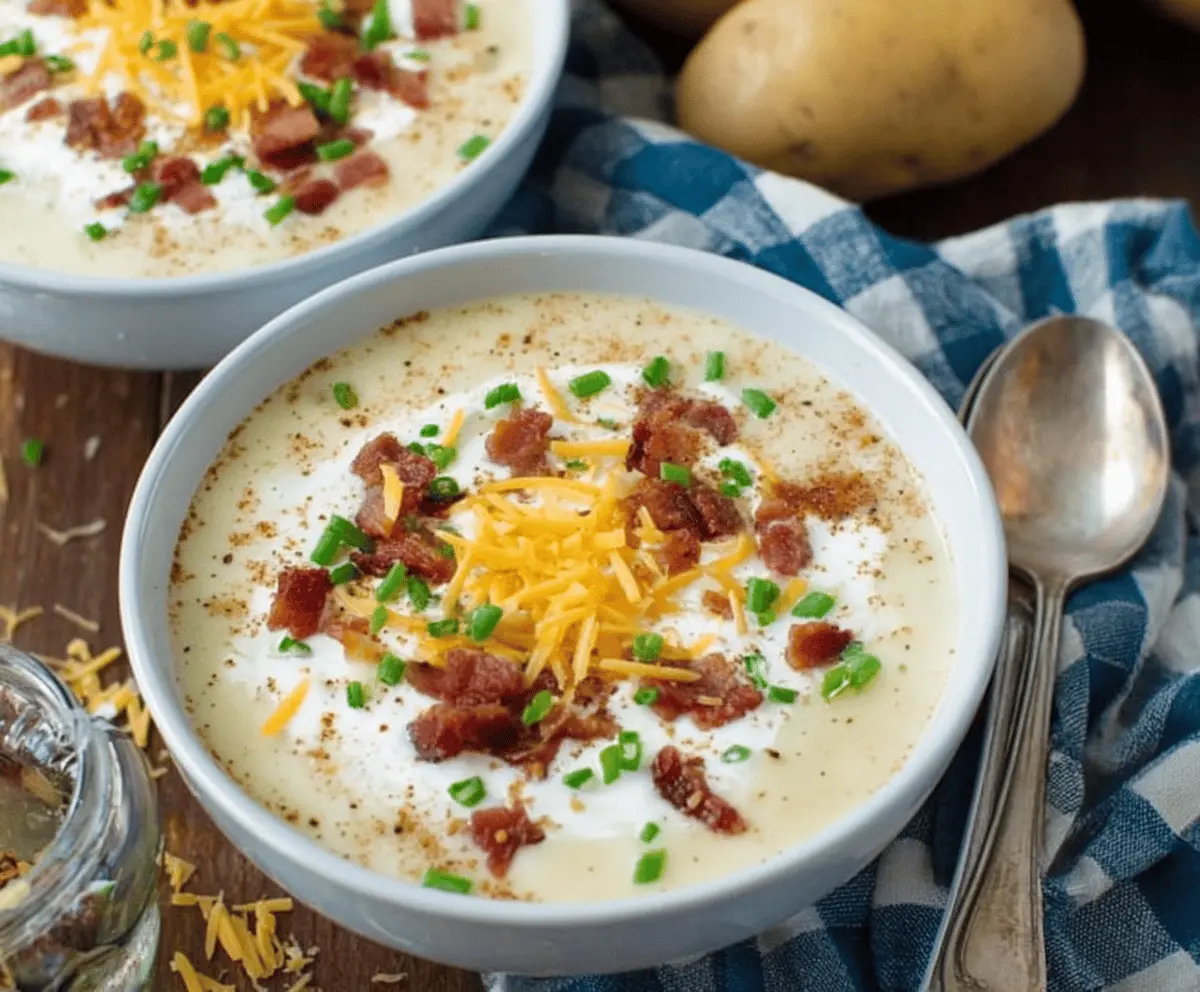 This creamy bacon potato soup is warm and comforting. With chunks of tender potatoes and crispy bacon, it’s the perfect dish for chilly days!