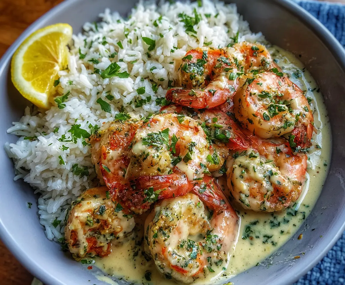 Creamy Garlic Butter Shrimp Bowl With Herb Rice