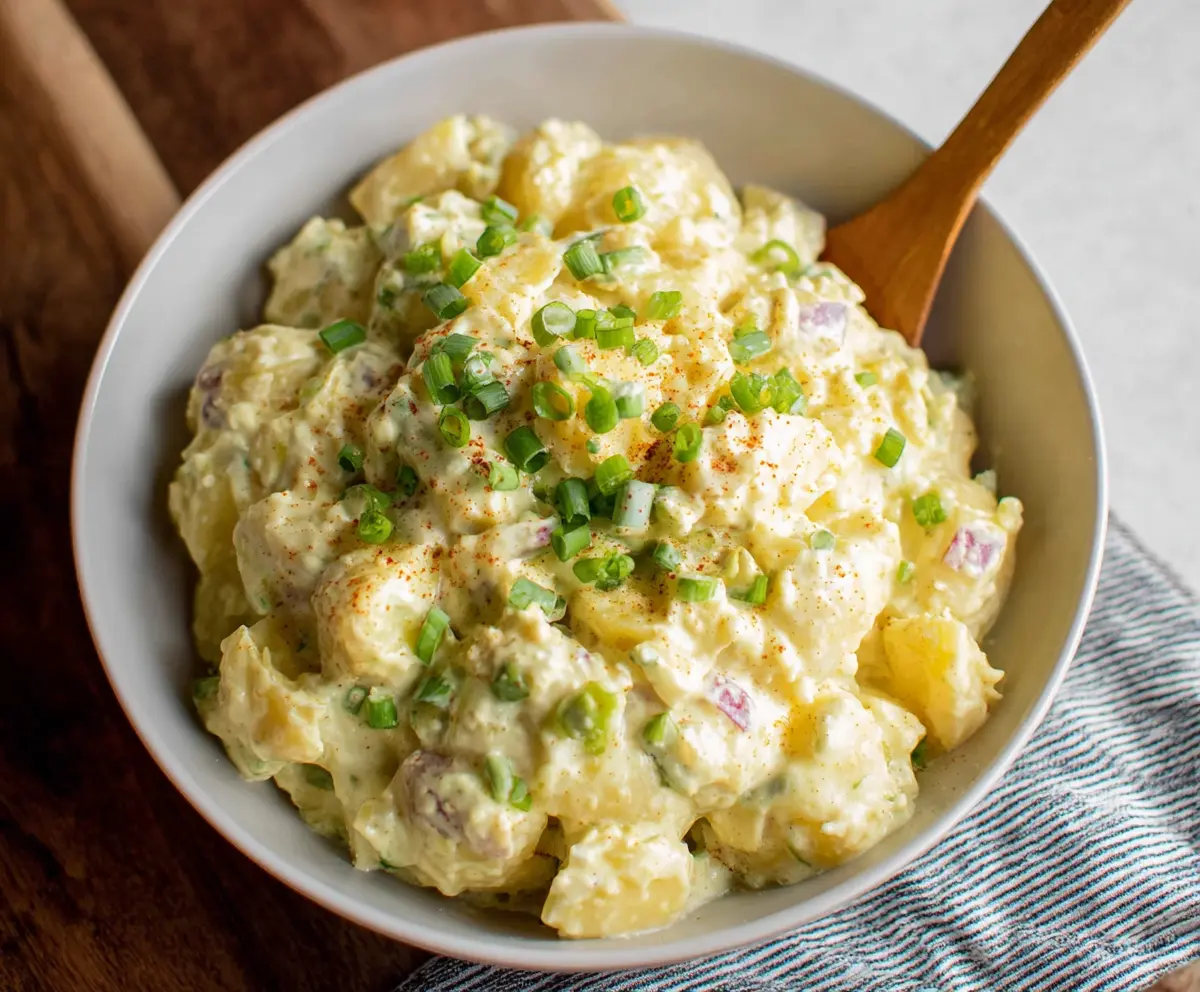This creamy potato salad is a side dish that everyone loves! With tender potatoes mixed with smooth mayo, mustard, and crunchy veggies, it’s simply delightful at any get-together.