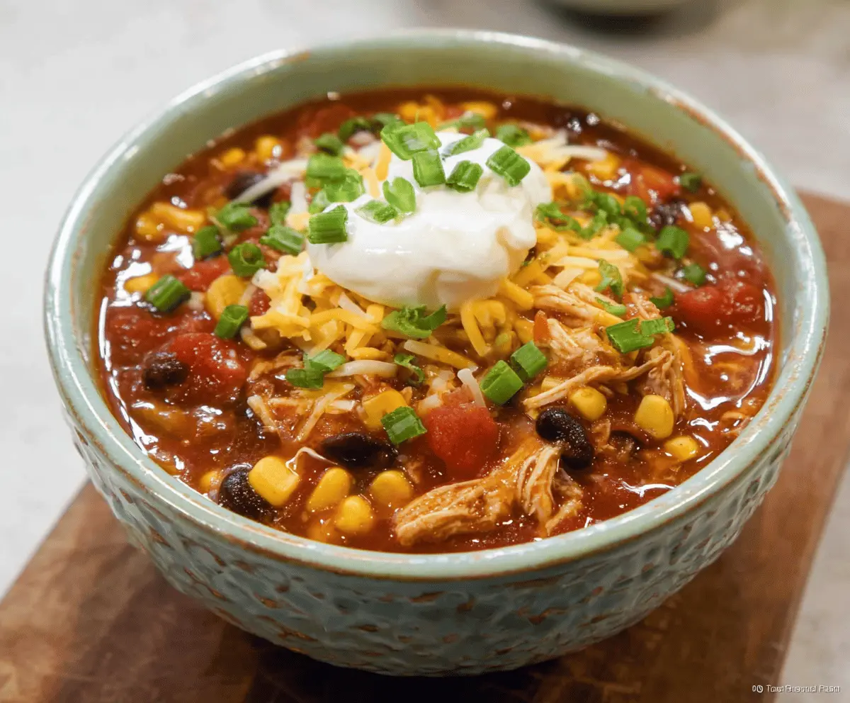This Chicken Taco Soup is a cozy dish that’s super easy to make in your crockpot. Just toss in chicken, beans, and spices, and let it simmer all day for a yummy meal!