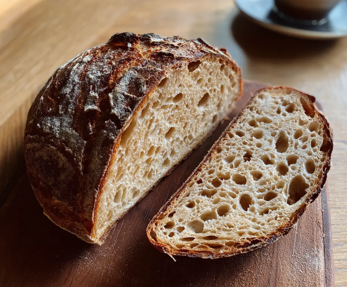 This Crust Sourdough Bread is a simple delight! Its crust is golden and crunchy, while the inside is soft and fluffy. The tangy flavor makes it perfect for sandwiches or just butter.