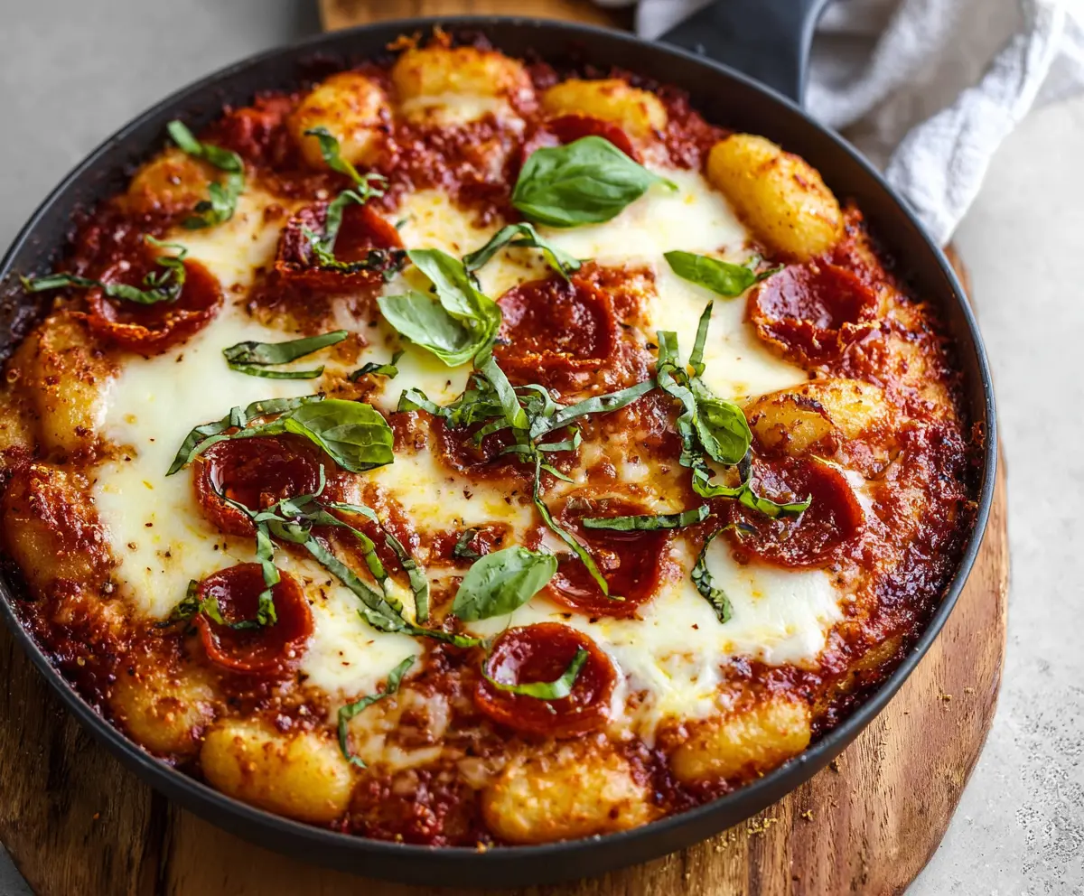 Enjoy this indulgent Gnocchi Pizza—a perfect blend of pillowy gnocchi, rich tomato sauce, melty cheese, and savory pepperoni!