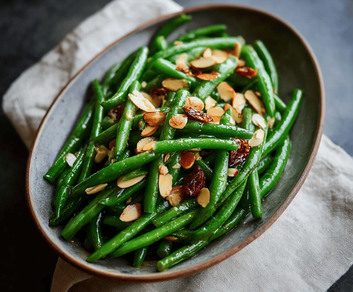 This dish looks fancy but is a breeze to make. I love the contrast of the crunchy nuts with the soft beans. It brings a pop of color to any plate—perfect for impressing family or friends!