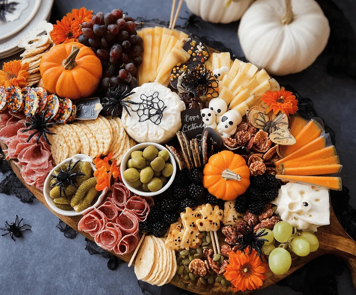 - Assorted Cheeses: Some cut into fun Halloween shapes like ghosts or letters.