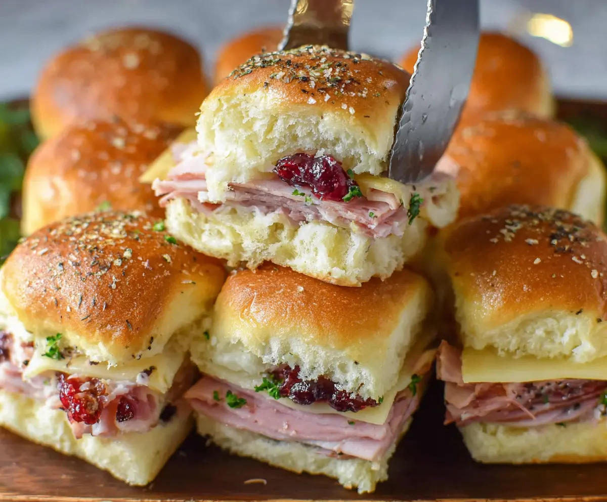 These ham and cranberry sliders are a yummy treat, perfect for parties or a cozy night at home. Juicy ham meets tart cranberries in soft rolls for a tasty combo!