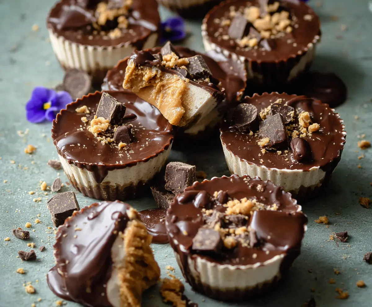 These Healthy Frozen Peanut Butter Greek Yogurt Cups are a tasty treat! They mix creamy Greek yogurt with rich peanut butter, then top them off with chocolate goodness.