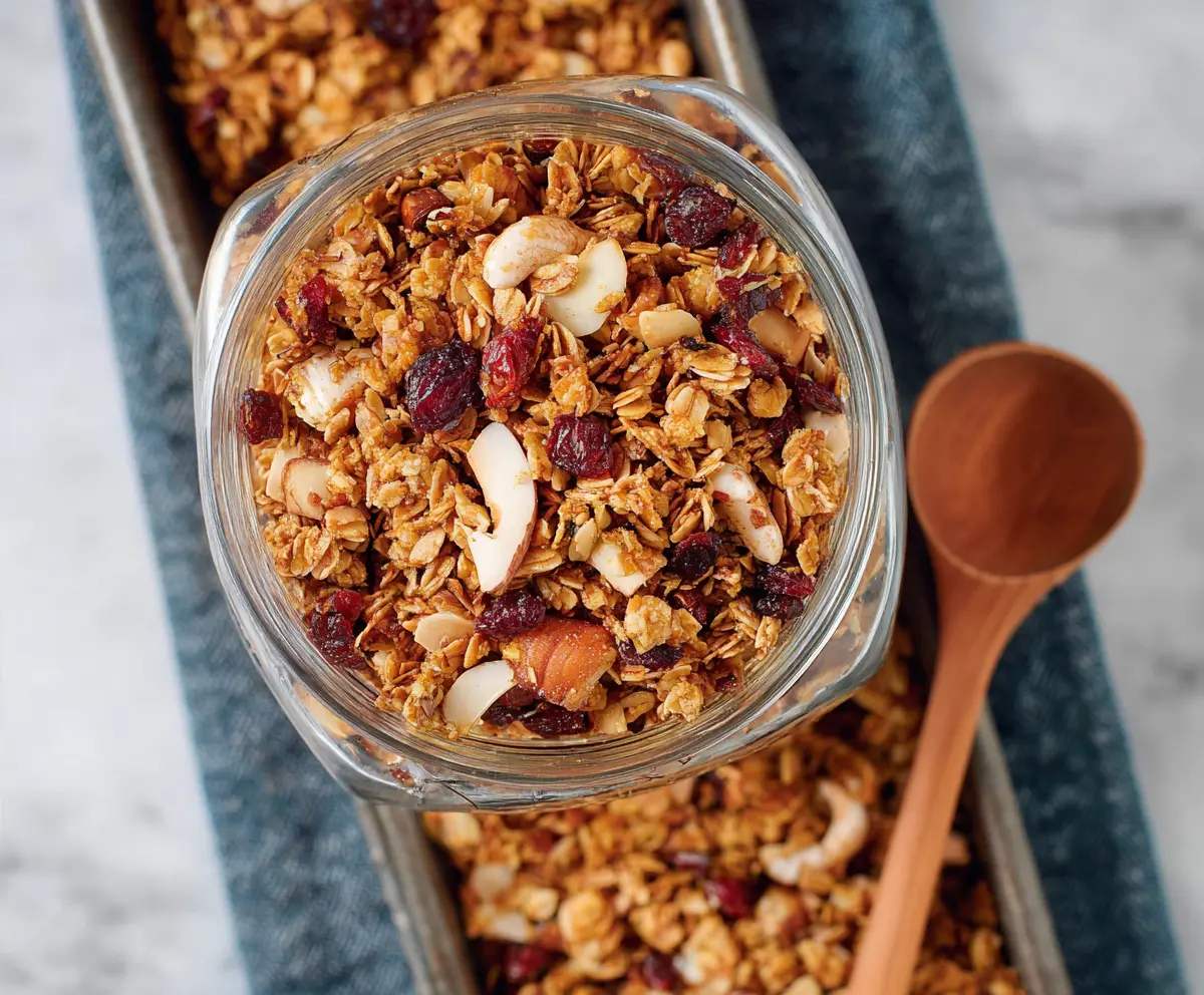 Let it cool completely on the baking sheet for that crispy texture. Enjoy it with yogurt or as a snack!