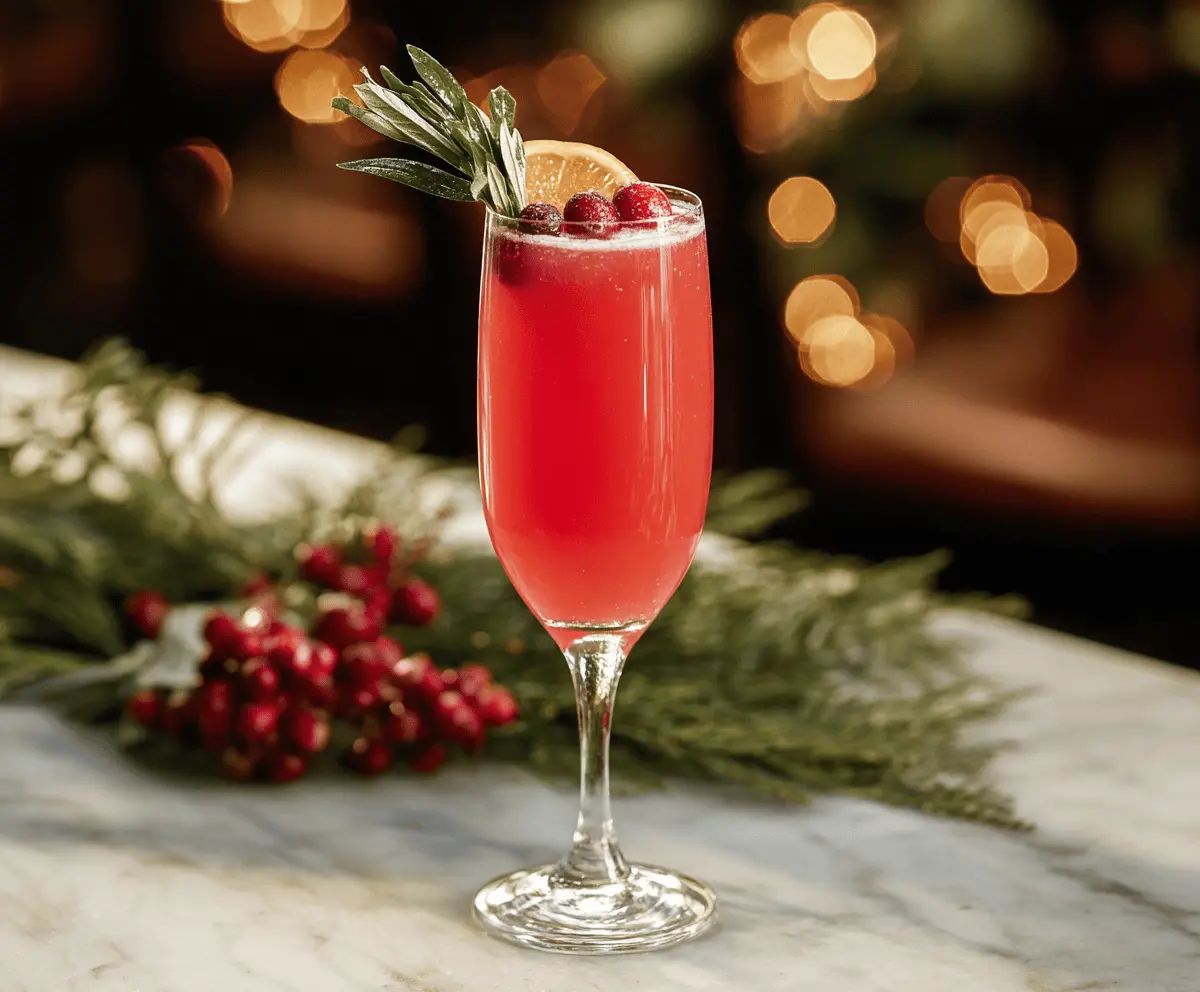 This Holly Jolly Mimosa adds festive cheer to any gathering! It blends sparkling wine with refreshing cranberry juice and a hint of orange, making it perfect for holiday toasts.