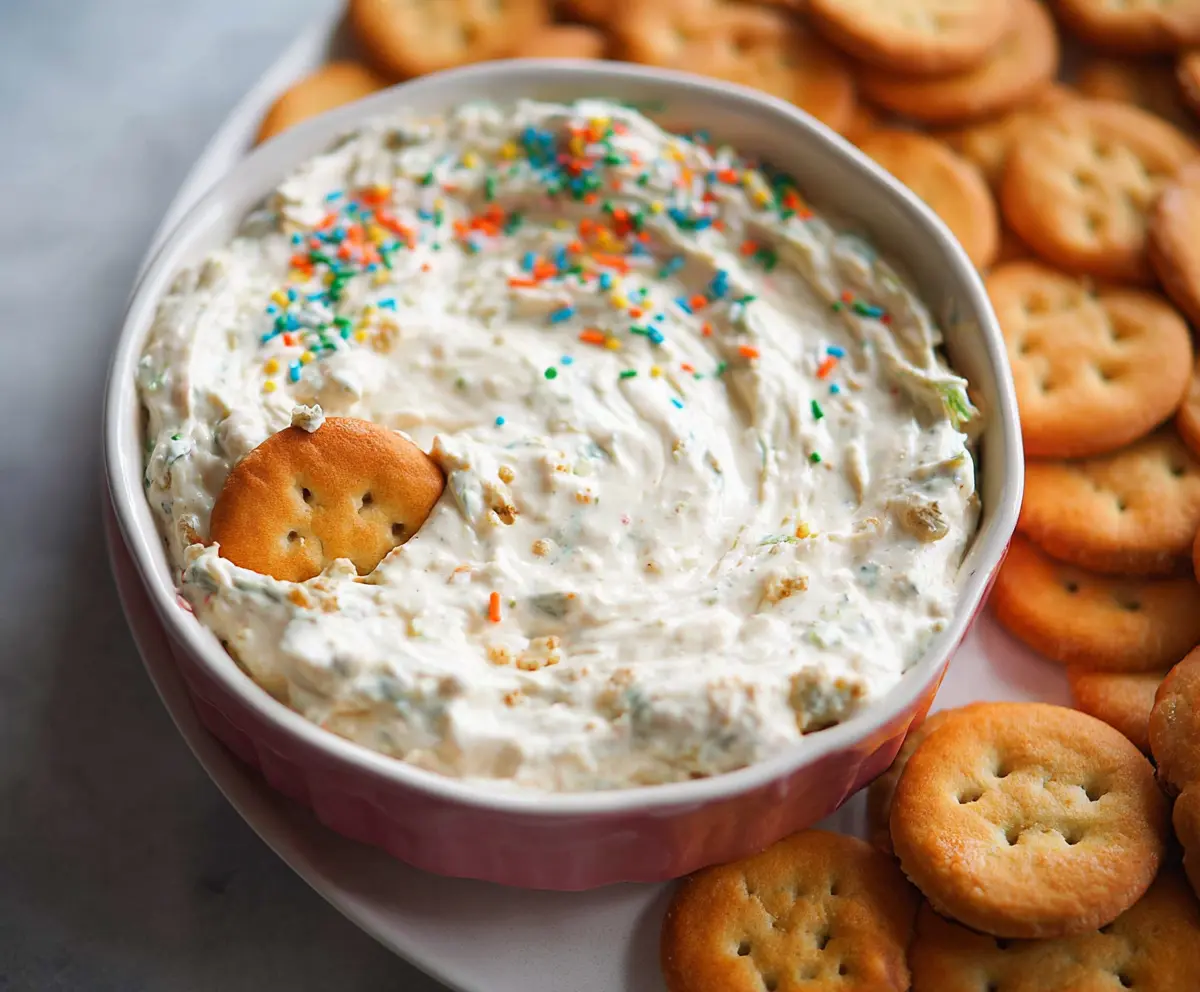 This fun and creamy Homemade Dunkaroo Dip brings back childhood memories! It’s made with sweet frosting, cream cheese, and sprinkles—perfect for dipping cookies, fruit, or even your finger! 😄