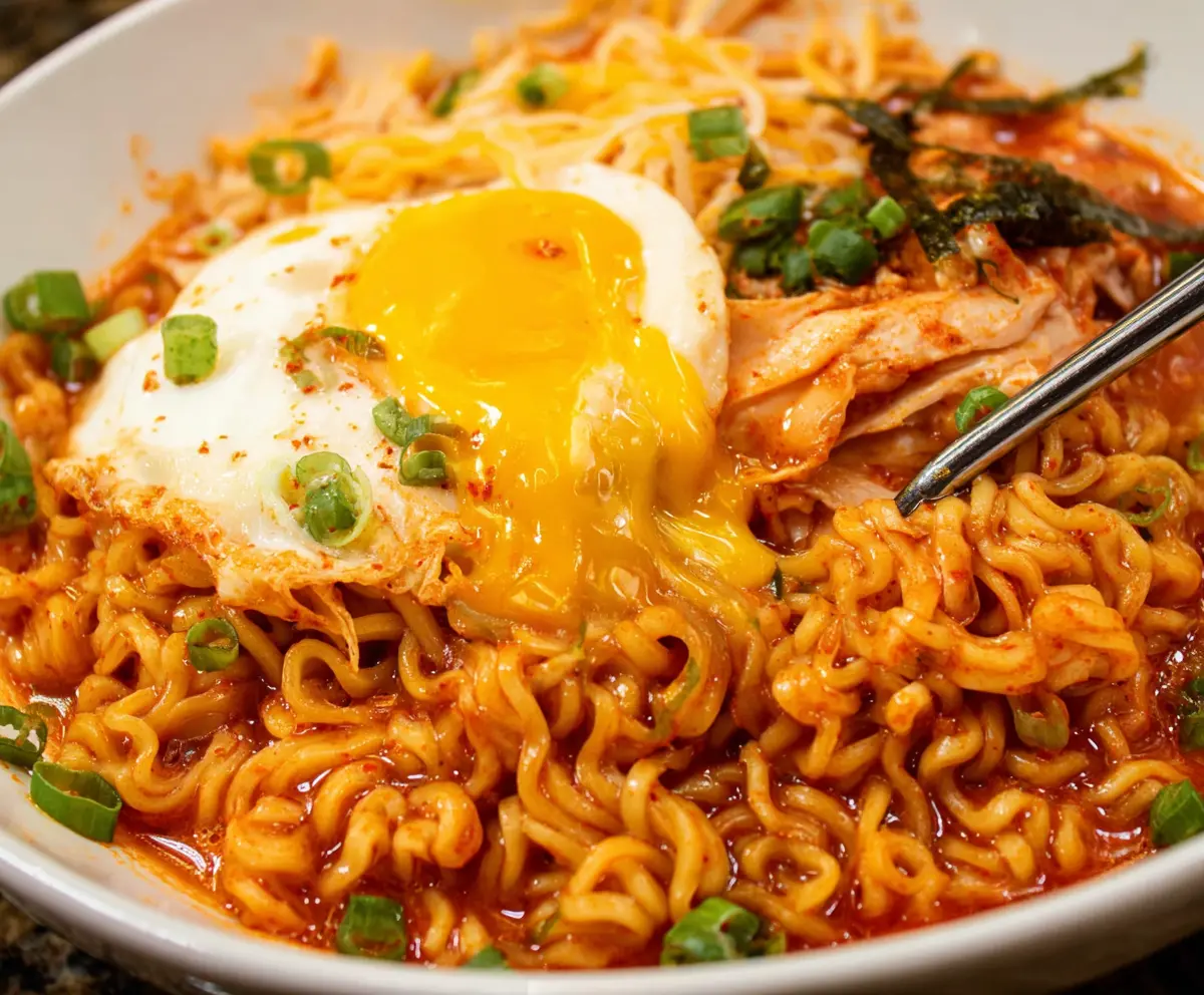 Kimchi Cheese Ramen is a warm and cozy dish that combines spicy kimchi with creamy cheese and flavorful noodles. It’s like a hug in a bowl!