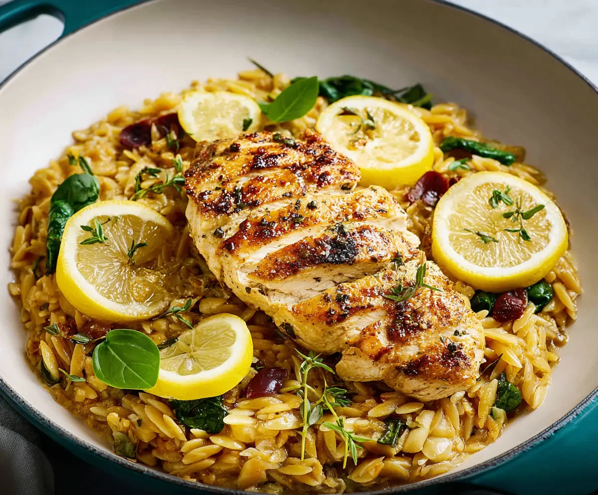 Enjoy a bright and zesty Lemon Chicken and Orzo dish that’s full of flavor! Tender chicken is cooked with refreshing lemon juice and served with fluffy orzo pasta.