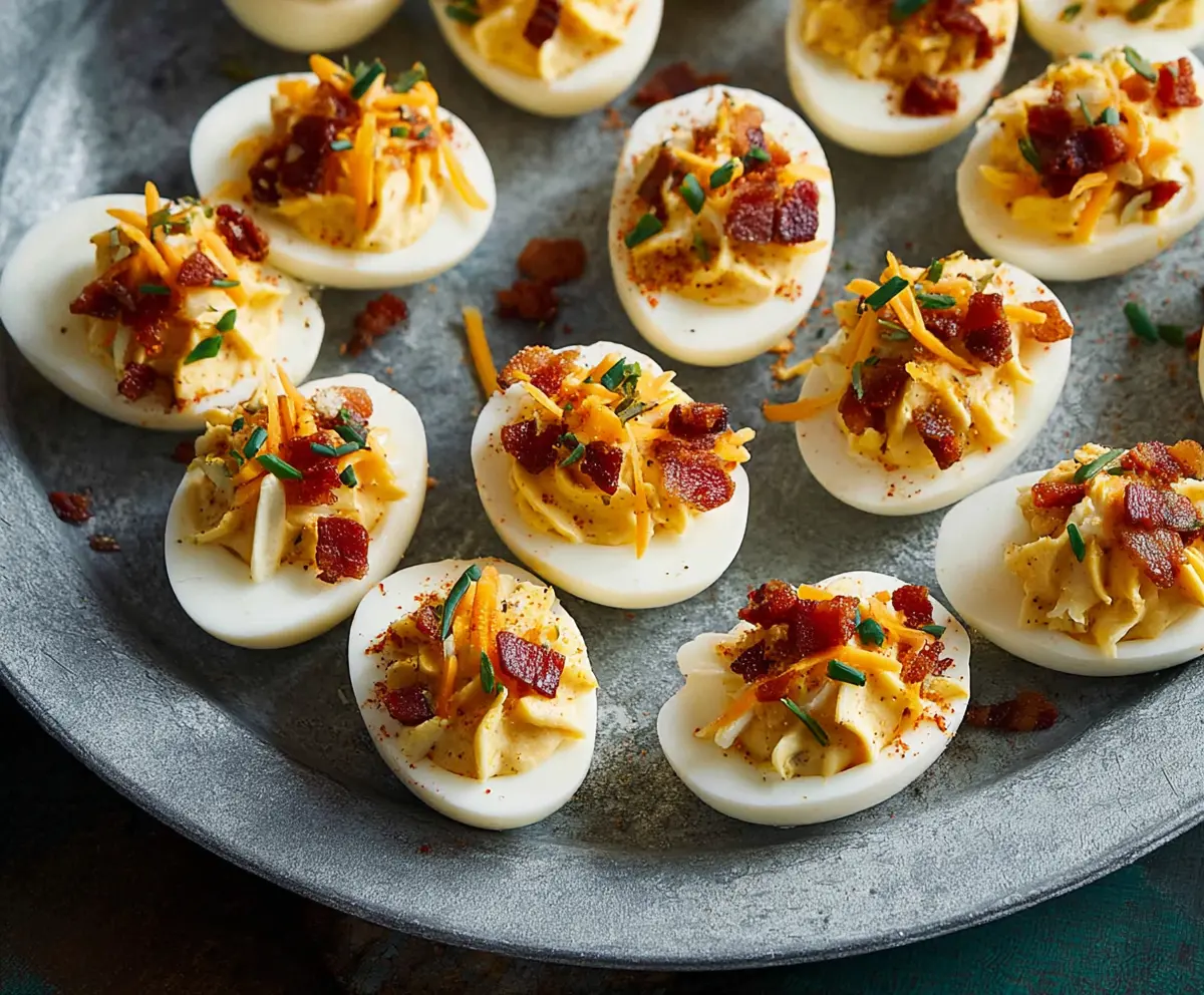 Once chilled, your loaded deviled eggs are ready to be enjoyed! They make for a fantastic appetizer or party snack that everyone will love!