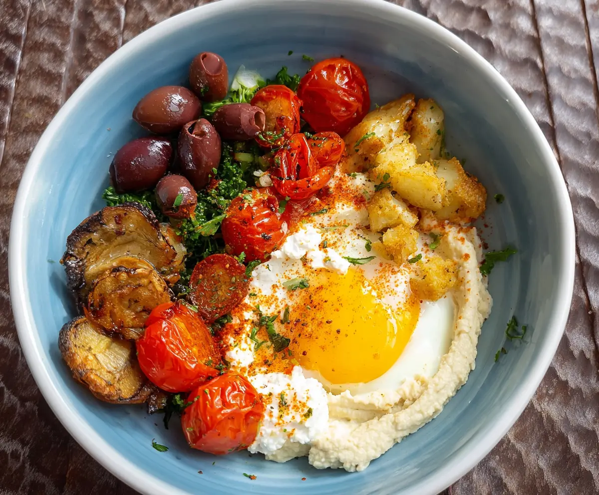 Dig in right away and enjoy this hearty Mediterranean breakfast bowl! It’s a tasty and nutritious start to your day, packed with flavor and texture.