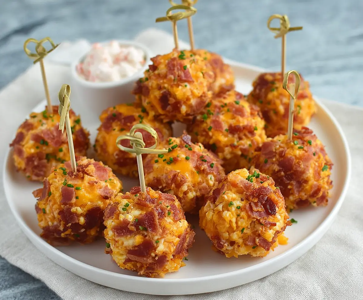 These Mini Bacon Ranch Cheeseballs are little bites of heaven! Made with cream cheese, crispy bacon, and ranch seasoning, they pack a flavorful punch.
