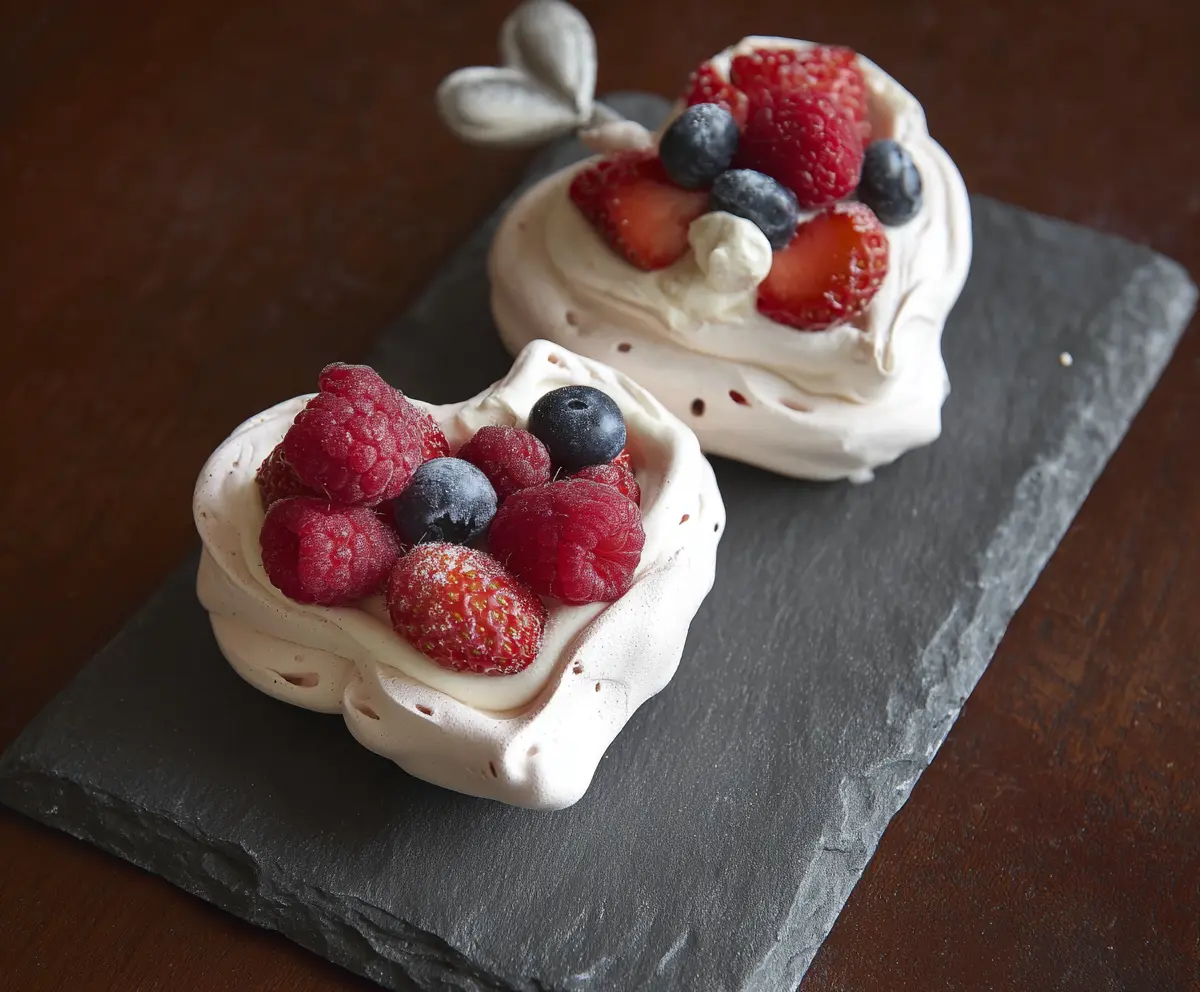 This recipe takes about 25 minutes of active preparation time. After that, you’ll need to bake the pavlovas for 1 hour to 1 hour 15 minutes, followed by cooling time in the oven. So, plan for around 2 hours in total, with most of that being baking and cooling time.