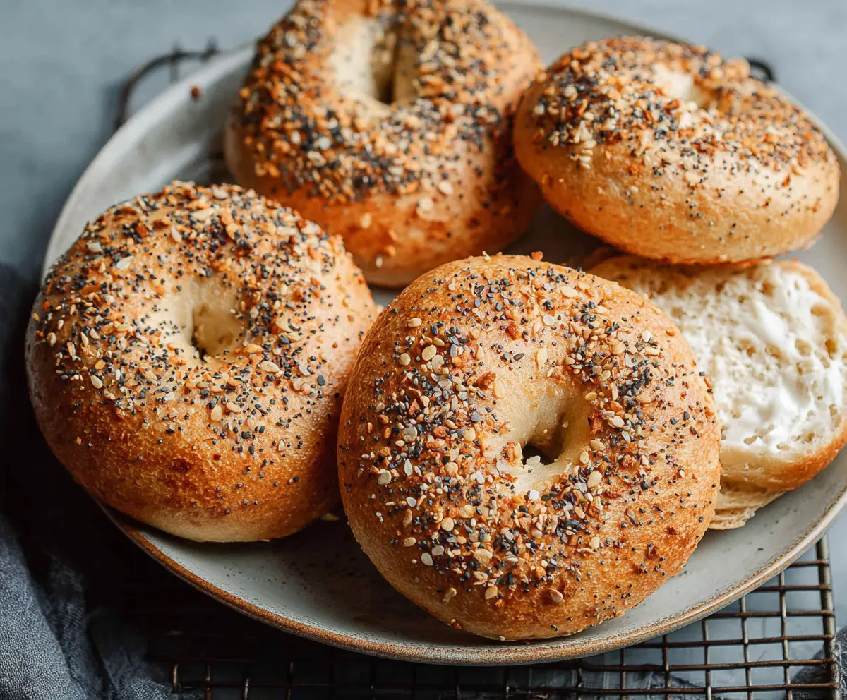 Once baked, allow the bagels to cool on a wire rack before slicing them. Enjoy them plain, toasted, or with cream cheese for a delightful breakfast treat!