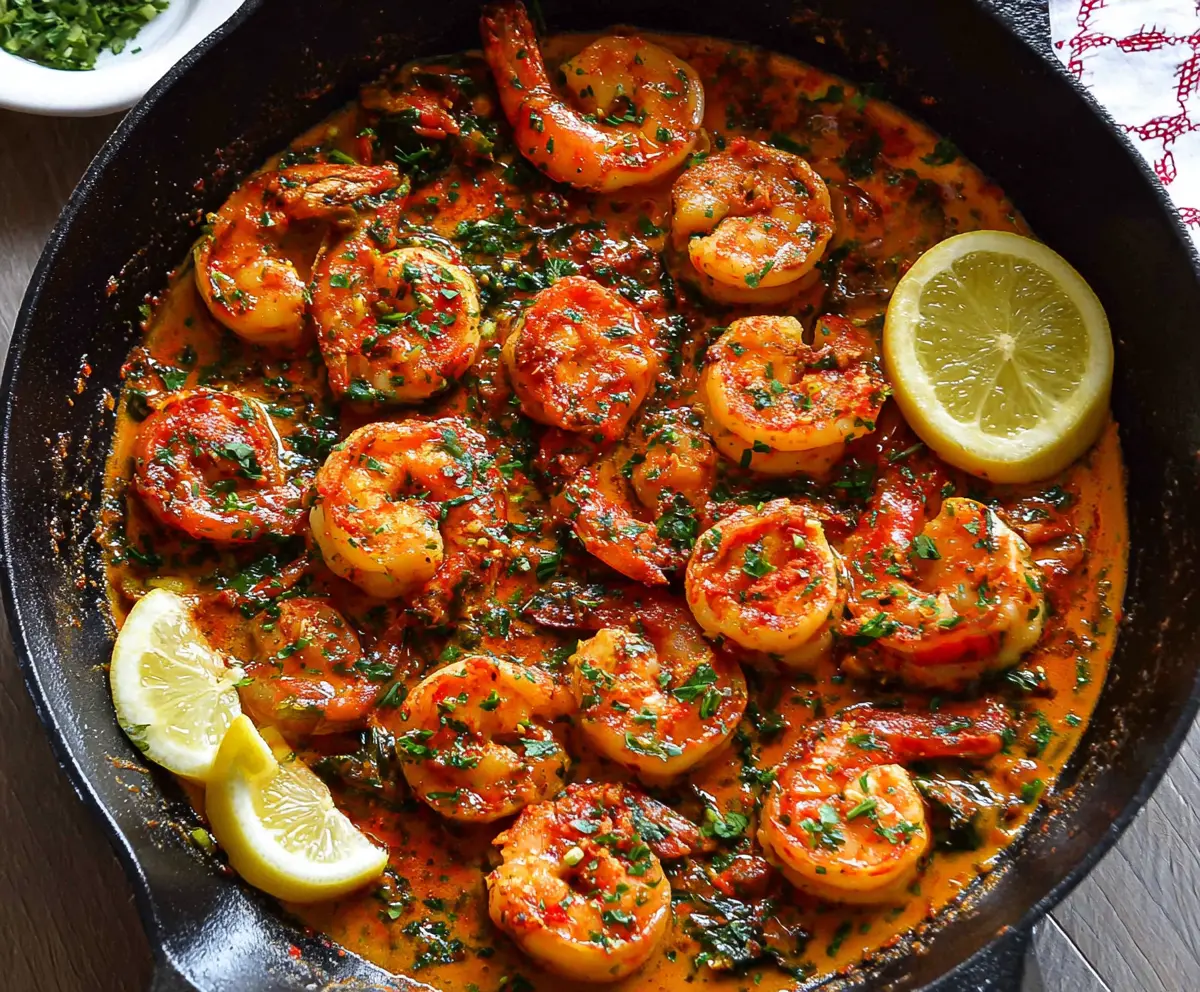 Squeeze the juice of half a lemon over the shrimp to give it a fresh zing and stir well. Sprinkle the chopped parsley over the skillet and give everything a final stir. Serve hot, garnished with lemon wedges, and don’t forget the crusty bread on the side to soak up that delicious sauce!