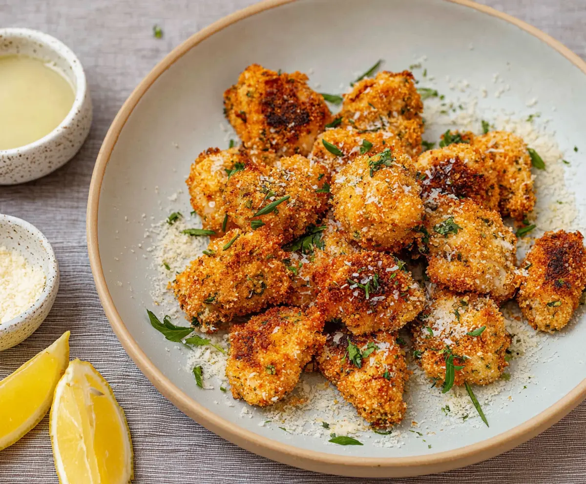Enjoy your crispy, savory Parmesan Herb Chicken Bites, bursting with flavor and crunch! 🥳🍽️