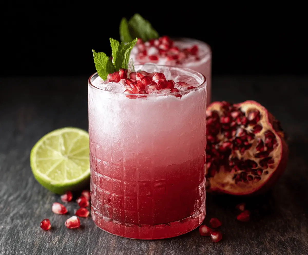 Your vibrant, refreshing Pomegranate Gin Fizz is ready to be enjoyed! Take a sip and savor the delightful flavors.