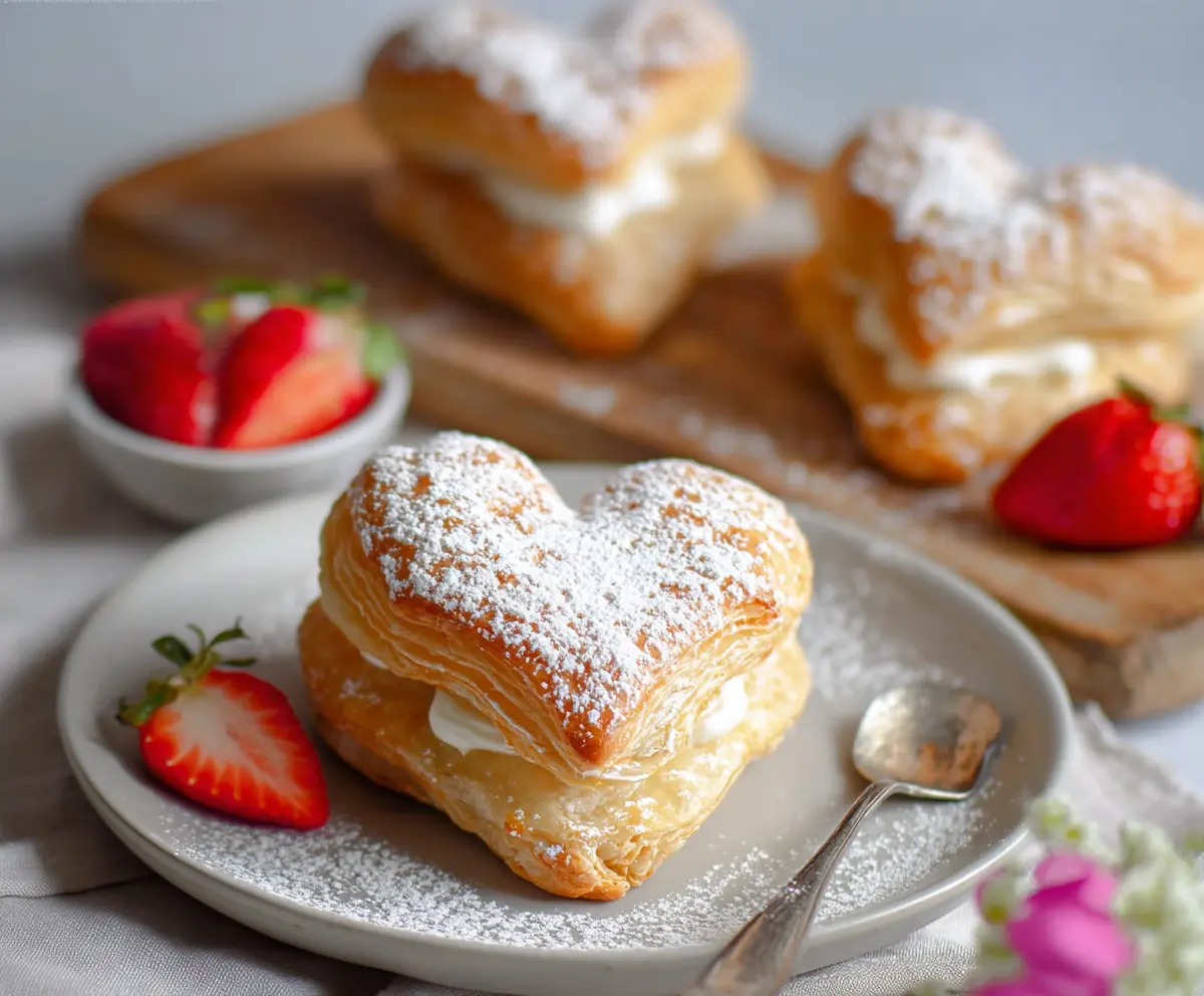 Enjoy these light, flaky, and creamy Puff Pastry Hearts as a delightful dessert or special treat! They’re sure to impress!