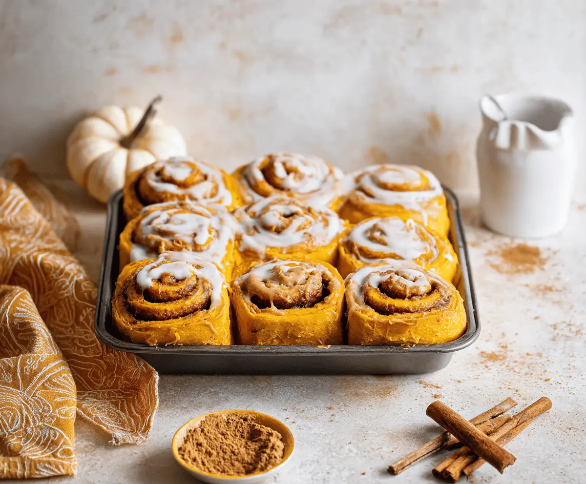 These pumpkin cinnamon rolls are fluffy and sweet, bursting with autumn flavors. The warm cinnamon and pumpkin mix will make your kitchen smell amazing!