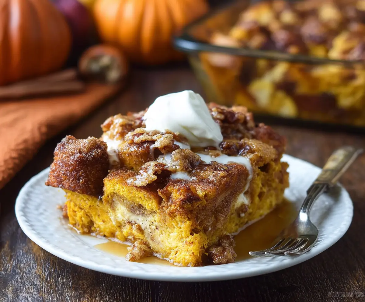 You’ll love how easy it is to make! Just layer bread, pour over a creamy pumpkin mix, and bake. It’s like having dessert for breakfast—who could resist? 😋