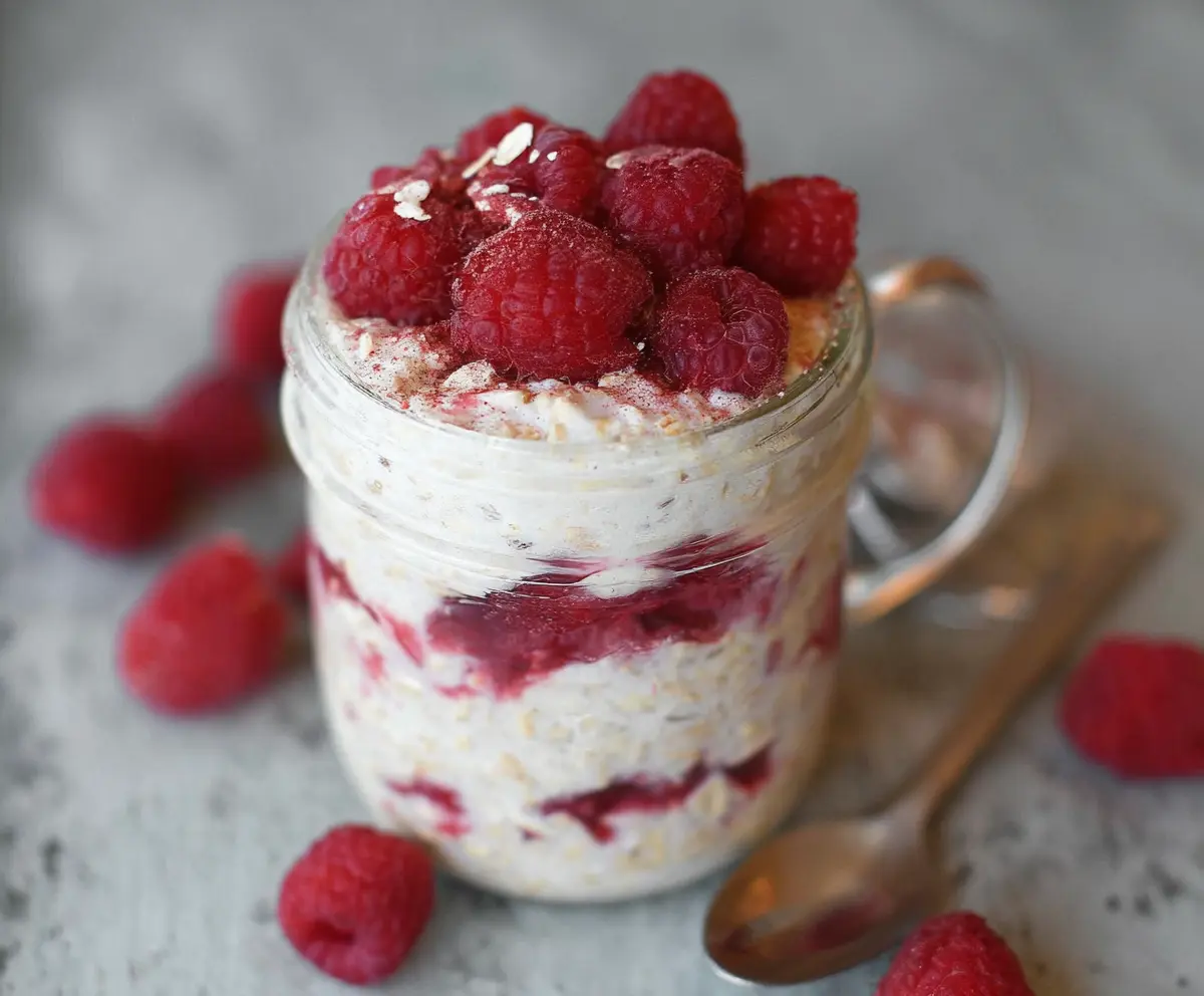 Perfect for busy mornings, you just mix everything and let it chill overnight. If you ask me, the raspberry topping makes it feel like dessert for breakfast—yum! 😋