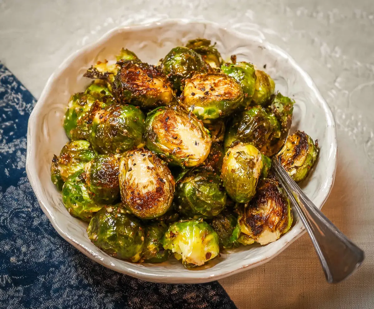 Enjoy your flavorful roasted Brussels sprouts with crispy, caramelized edges!