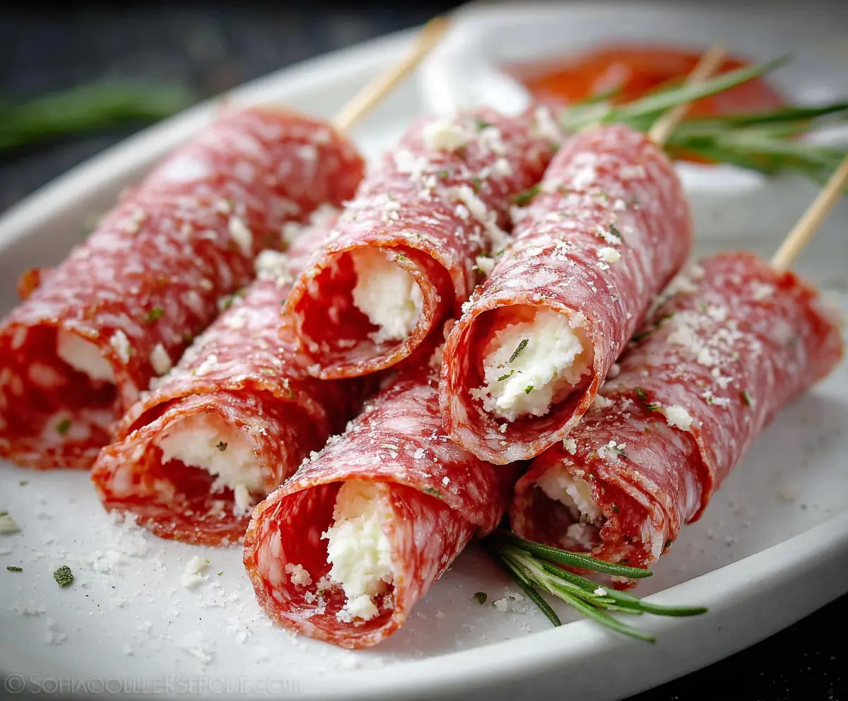 Salami Roll Ups are a fun and tasty snack that’s super easy to make! Just take slices of salami, and wrap them around cream cheese or veggies for a bite-sized treat.